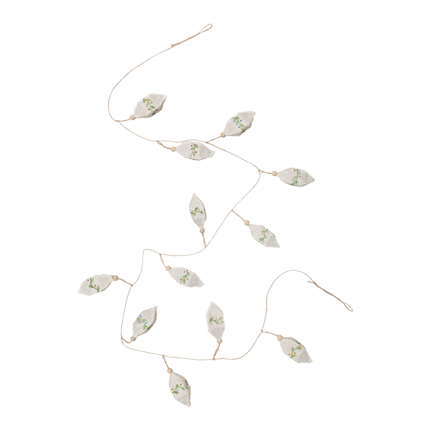 Natural and green hand-painted burlap wrapped garland; Made from 100% paper mache.