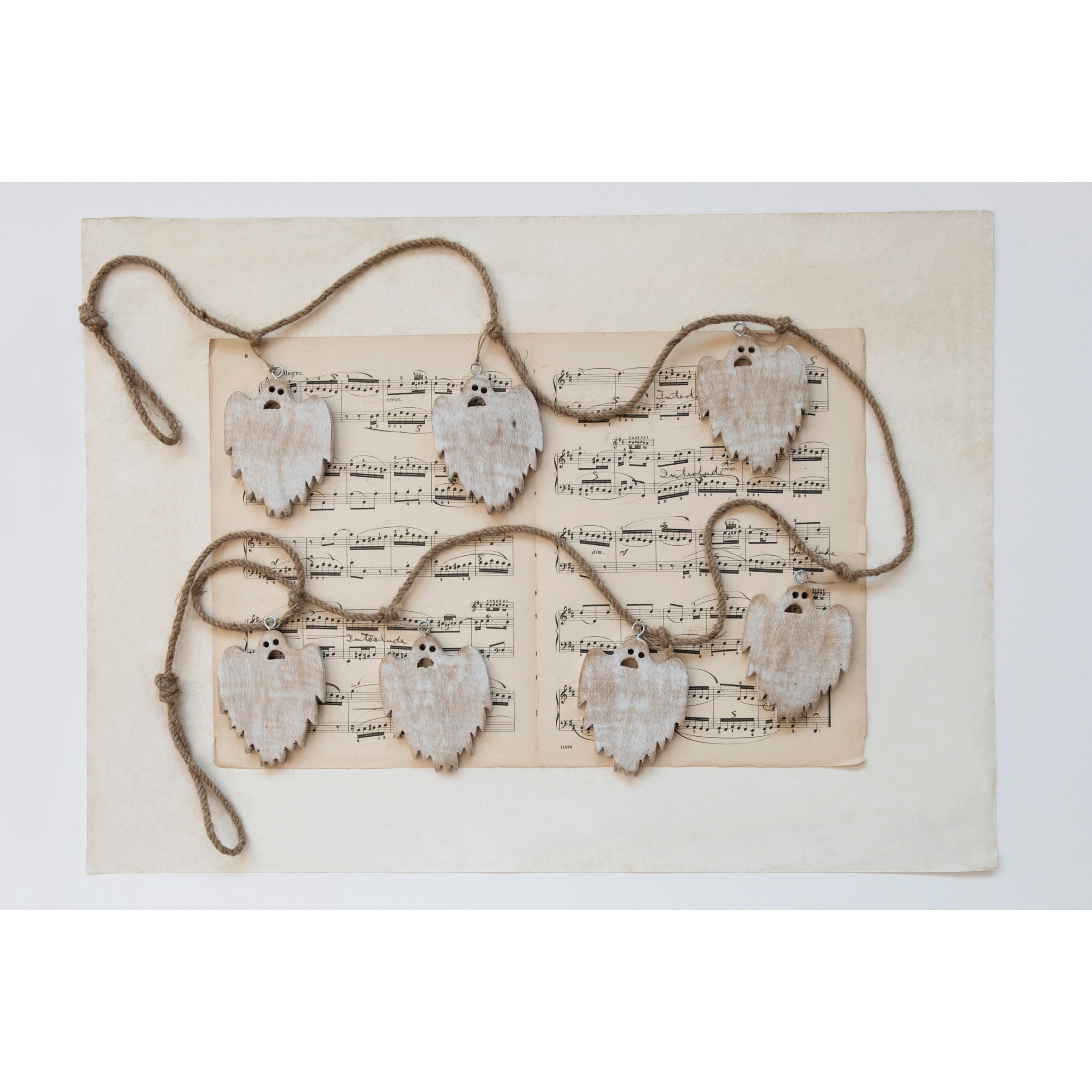 72"L Jute and Mango Wood Ghost Garland, White