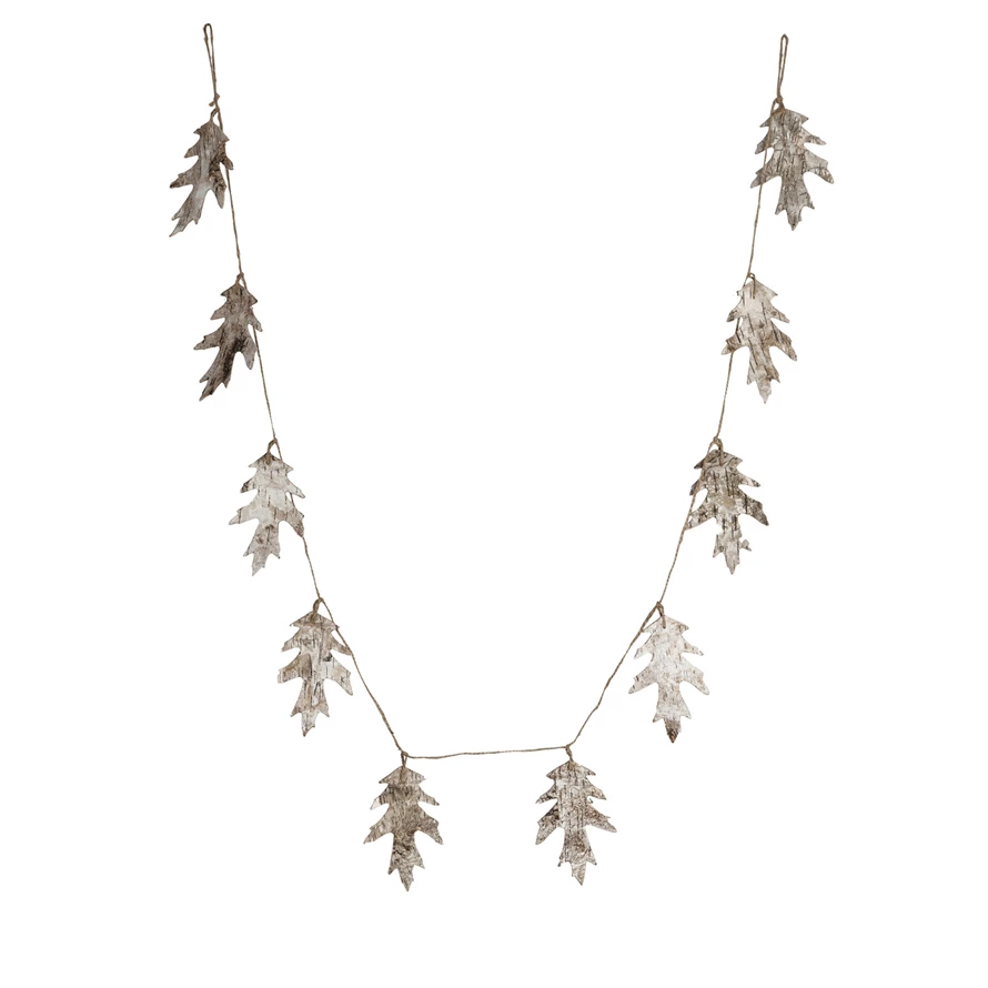 Birch Bark Oak Leaf Shaped Garland w/ Jute Cord, Natural