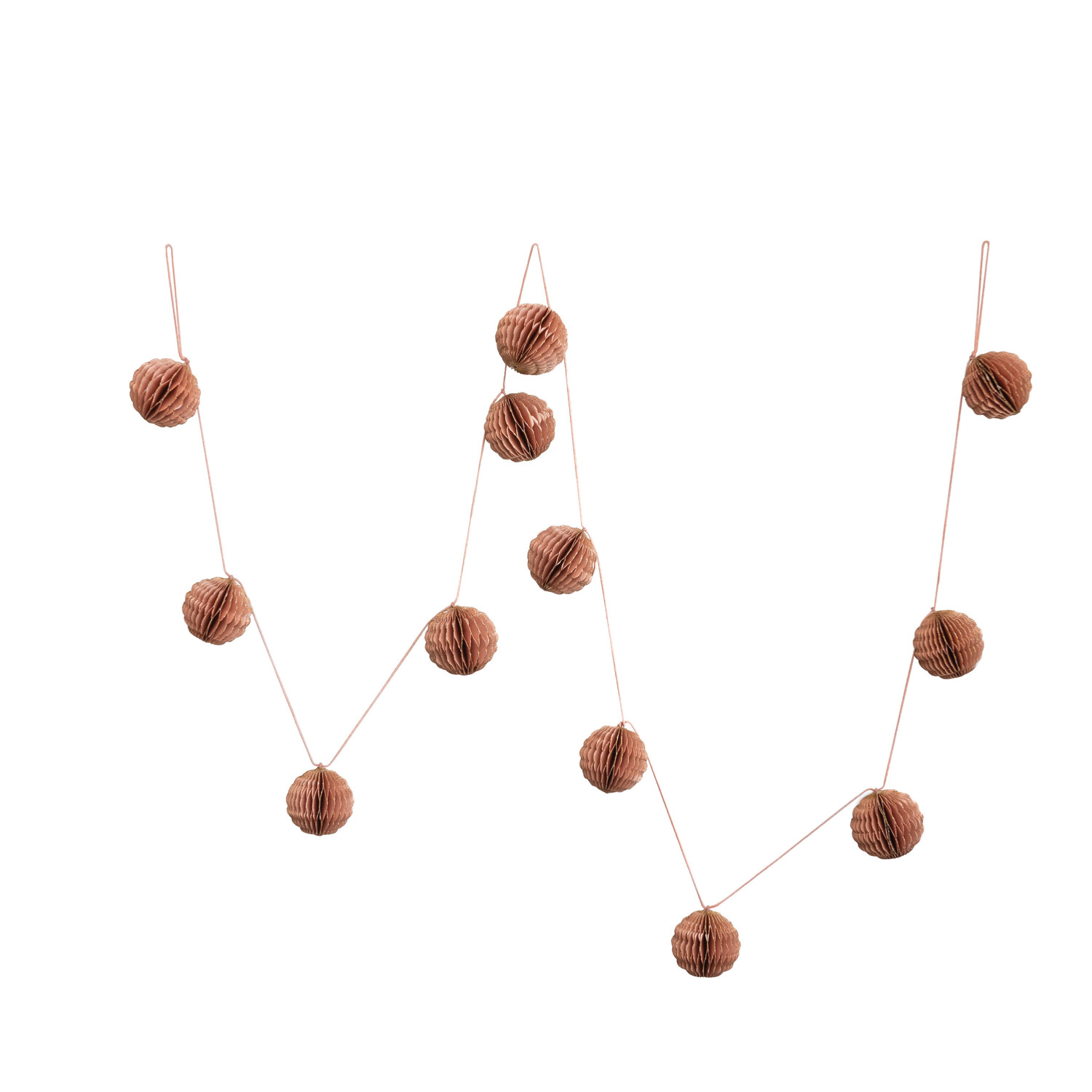 This festive garland features intricately handcrafted recycled paper honeycomb balls finished with gold glitter. Add a touch of festive whimsy to any space with our enchanting collection of garlands, including stunning glass, sleek metal, and delightful mixed-material options, all expertly crafted to create a merry and bright atmosphere.