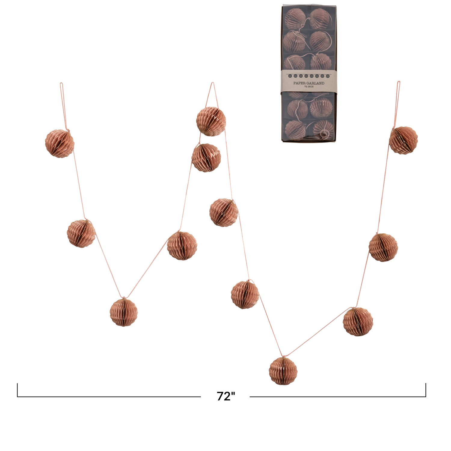 Catalog Name: 72"L Handmade Recycled Paper Honeycomb Ball Garland w/ Gold Glitter, Peach Color