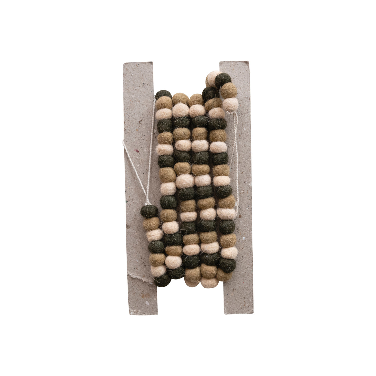 Catalog Name: 72"L x 1/2"H Handmade Wool Felt Ball Garland, Cream Color & Brown