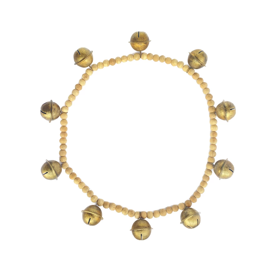 Catalog Name: 33"L x 3"H Wood Bead & Metal Bell Garland, Natural & Antique Gold Finish