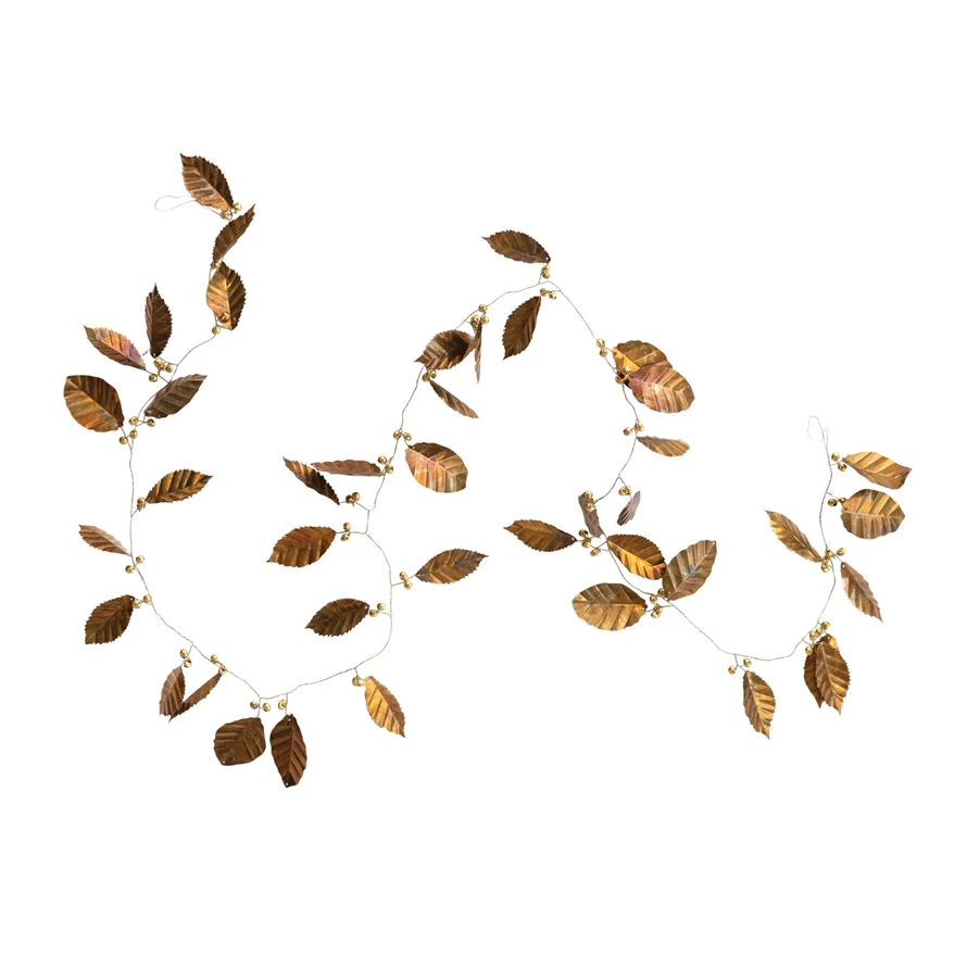 Metal Leaf Garland with Jingle Bells, Gold Finish