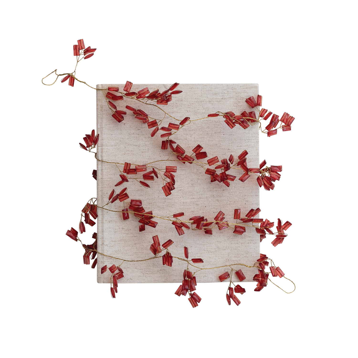 Catalog Name: 72"L x 1-1/2"H Handmade Brass & Glass Bead Garland, Red