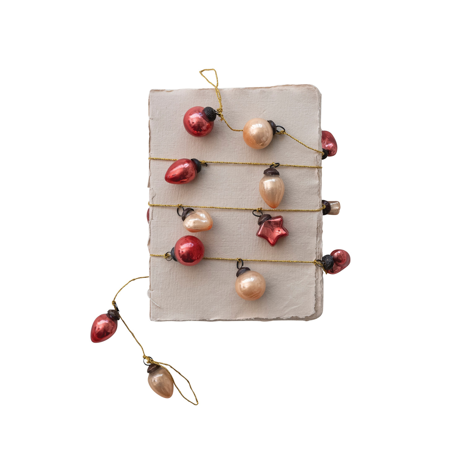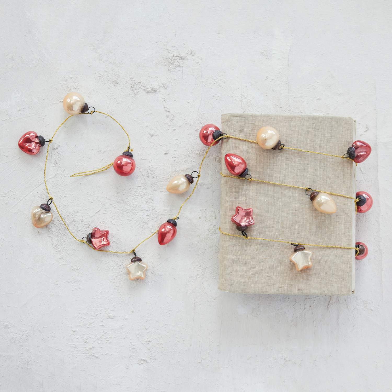 Embossed Mercury Glass Ornament Garland with Gold Cord, Berry & Blush Color