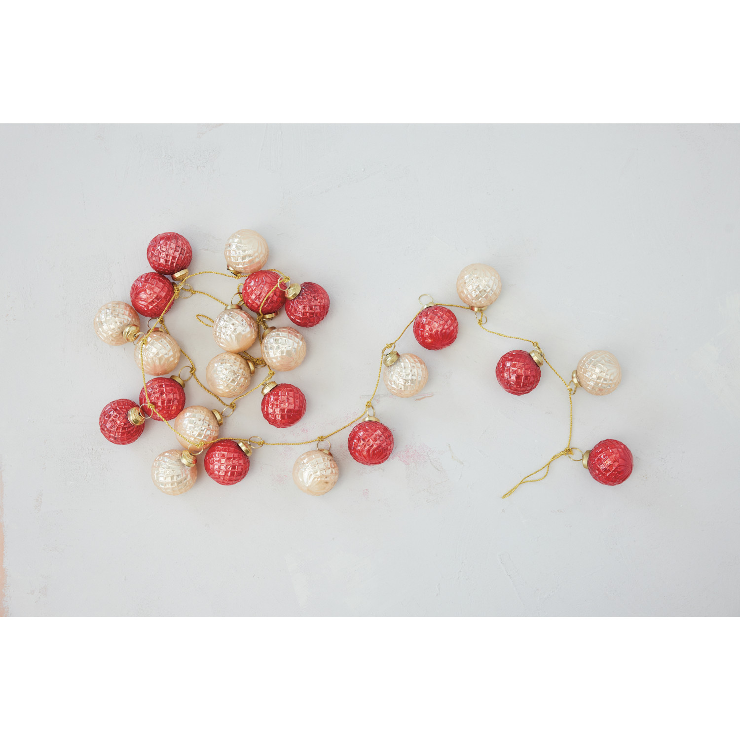 Embossed Mercury Glass Ball Ornament Garland with Gold Cord, Berry & Blush Color
