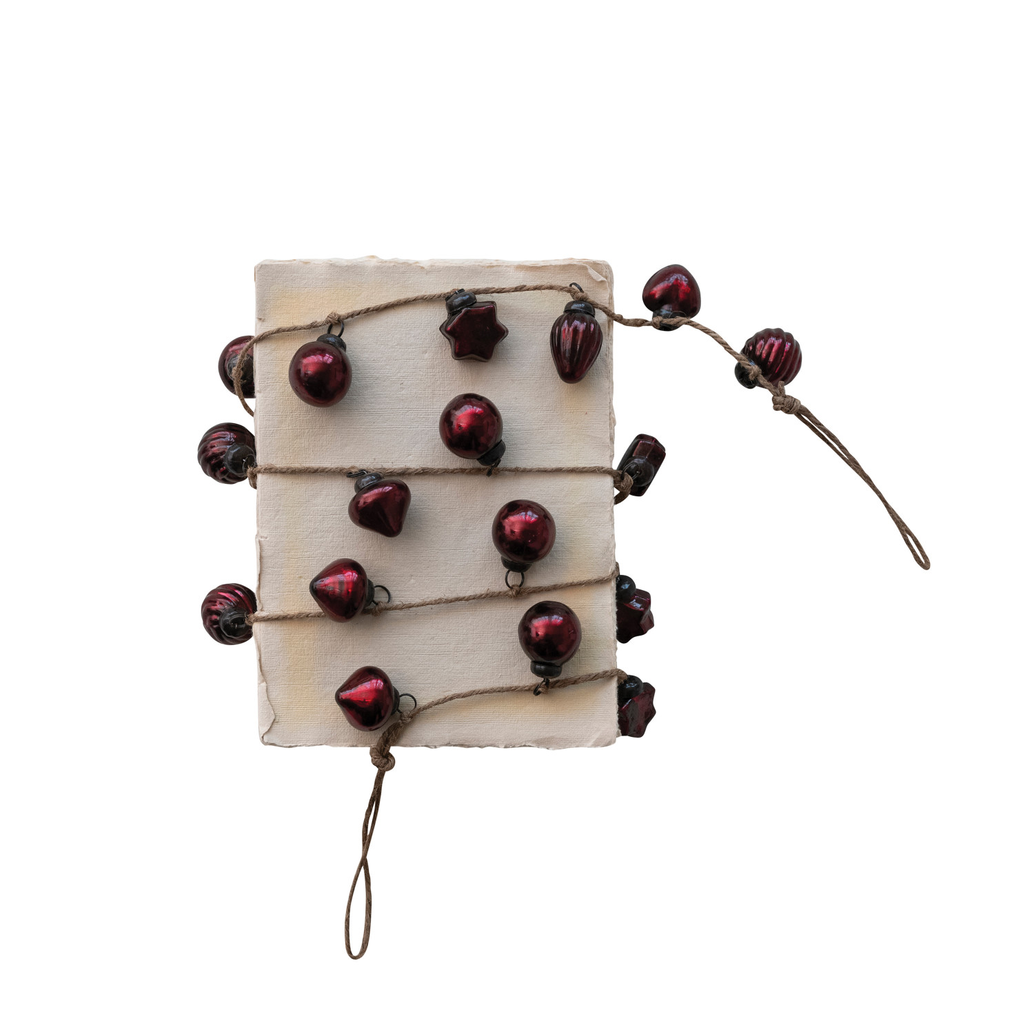 Embossed Mercury Glass Ornament Garland with Jute Cord, Burgundy