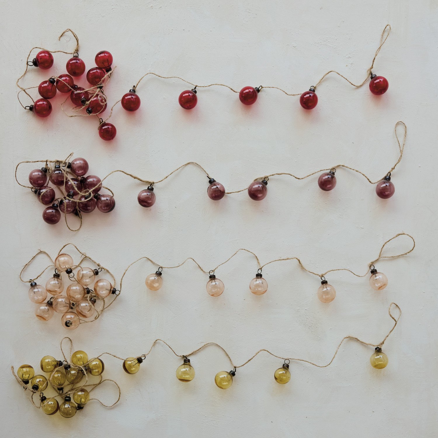 Hand-Blown Glass Ball Ornament Garland with Jute Cord, Plum Color