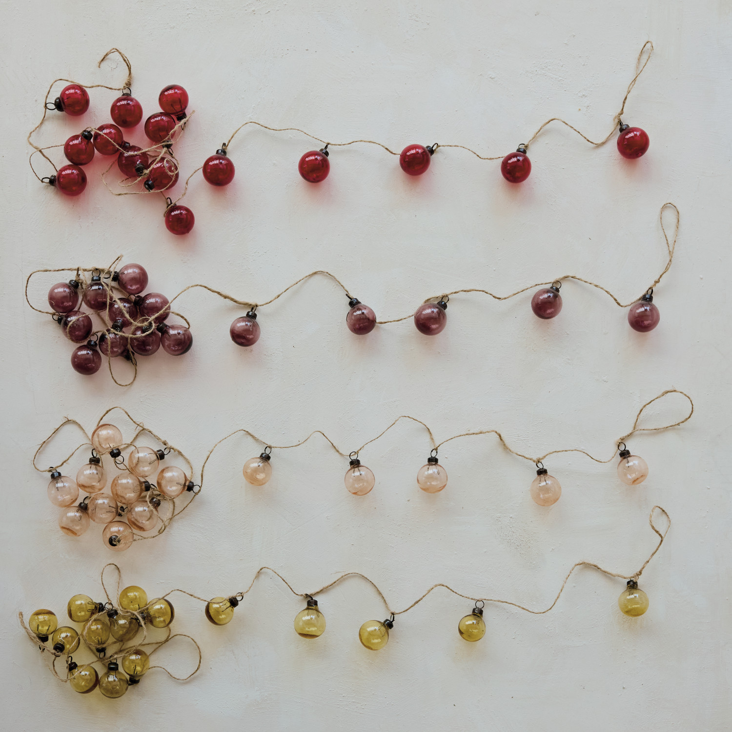 Hand-Blown Glass Ball Ornament Garland with Jute Cord, Blush Color