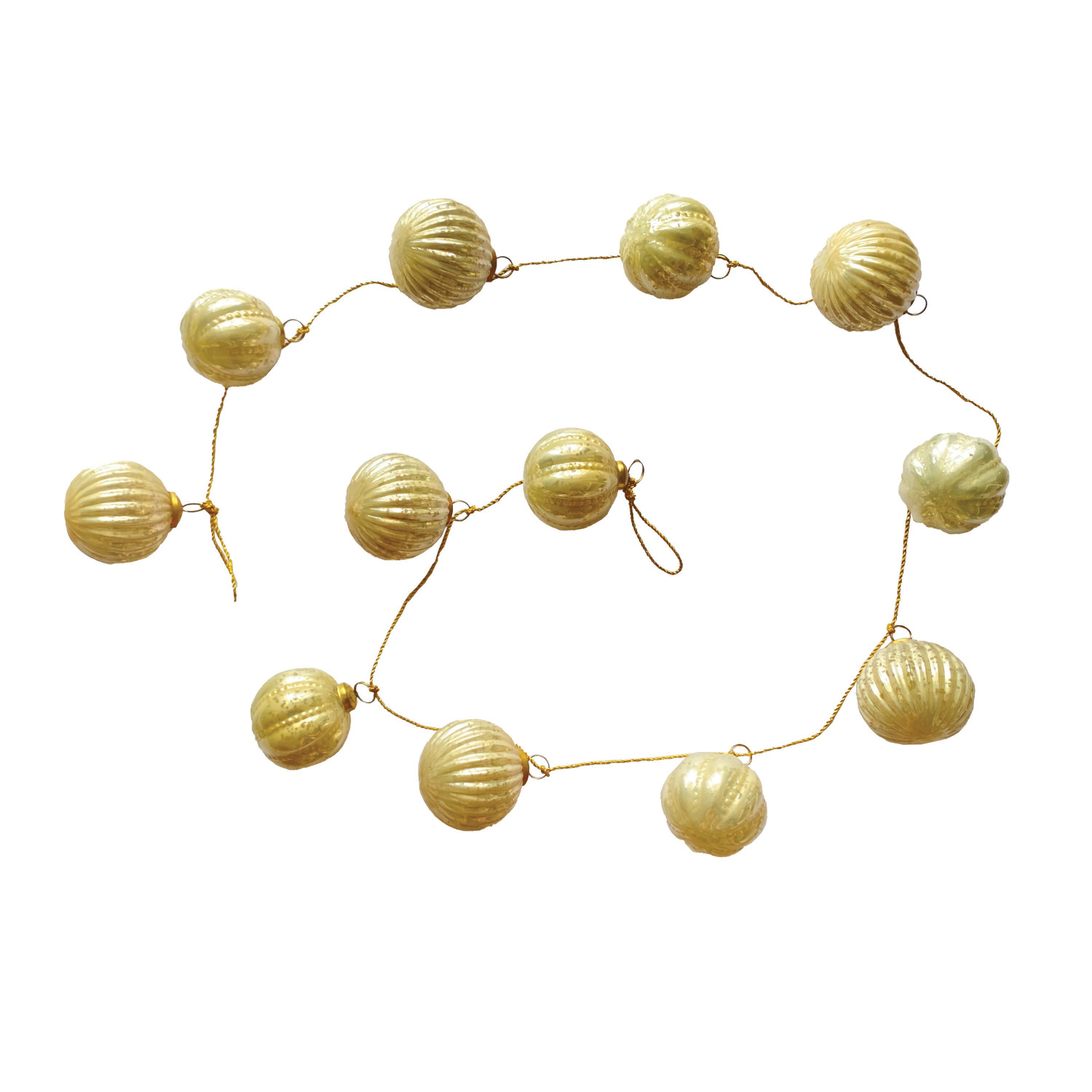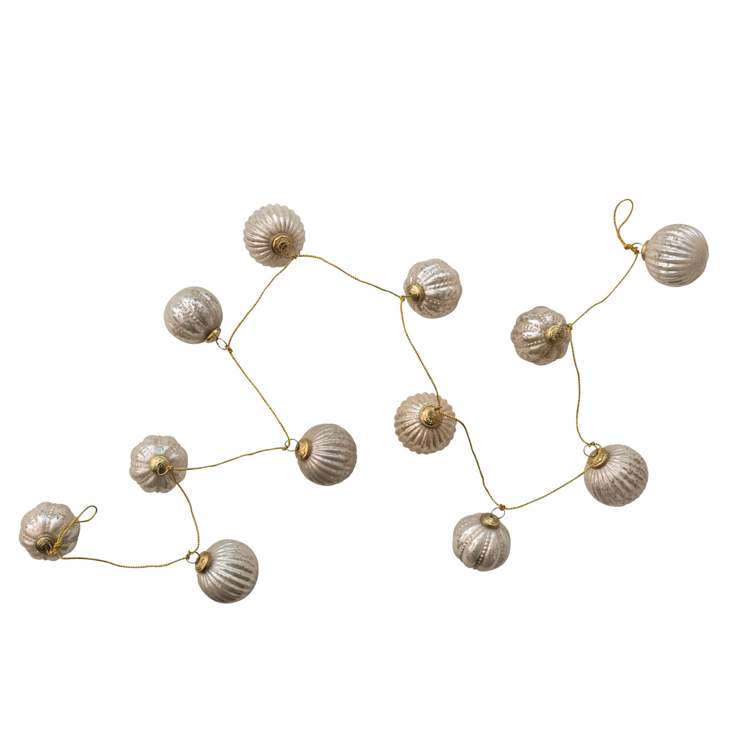 Catalog Name: 72"L x 3"H Embossed Mercury Glass Ornament Garland w/ Gold Cord, Champagne Finish