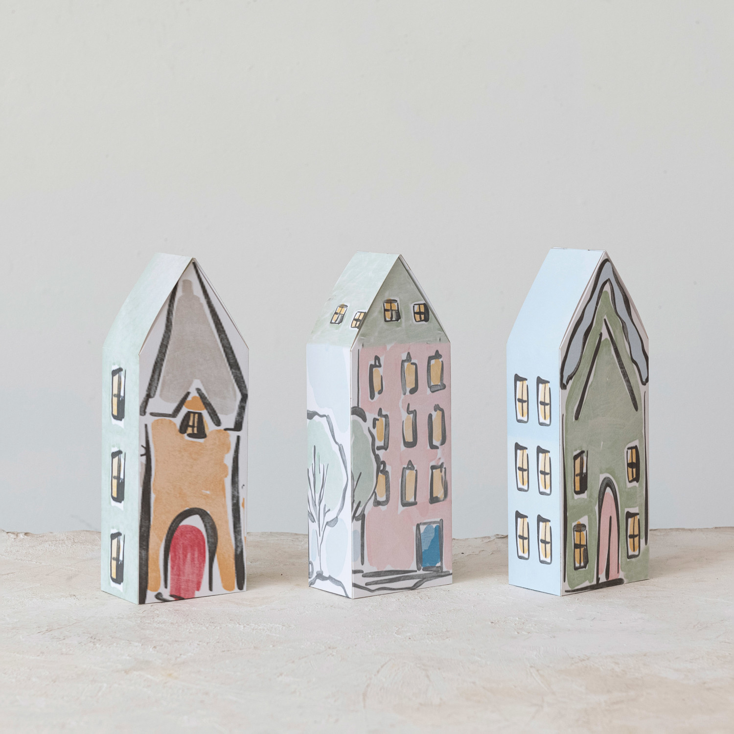 Printed Recycled Paper House Shaped Gift Boxes, Set of 3 ©