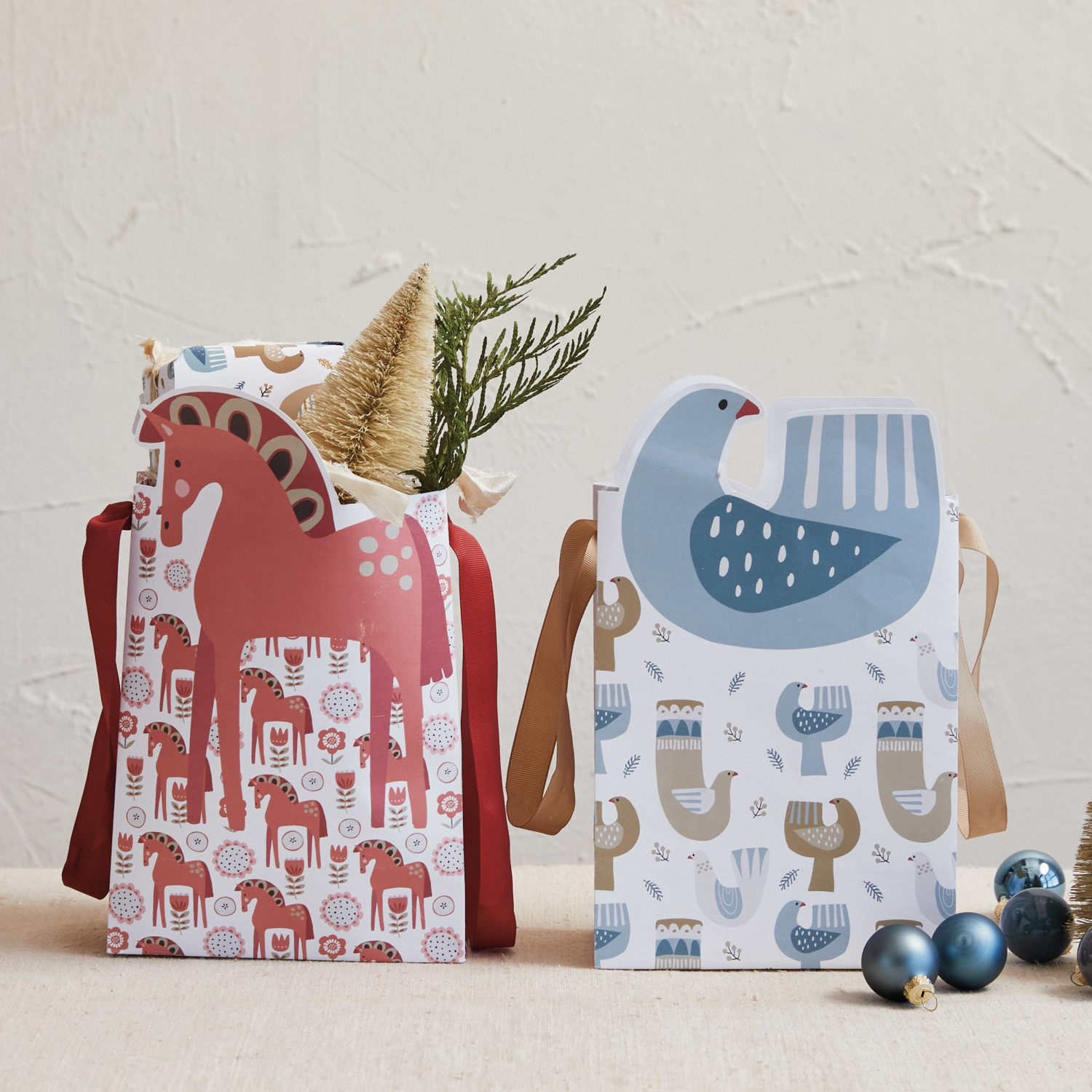 Printed Recycled Paper Dove/Dala Horse Shaped Gift Bag, 2 Styles
