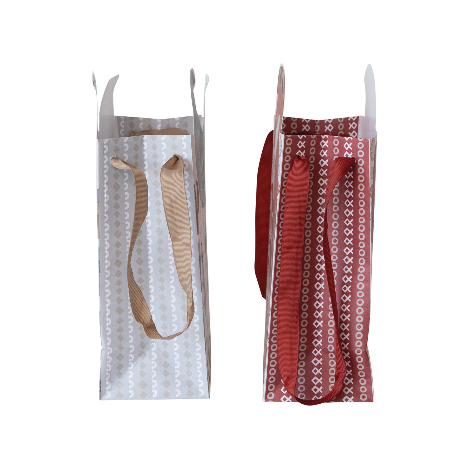 Catalog Name: 6-1/2"L x 3-1/2"W x 10-1/2"H Printed Recycled Paper Dove/Dala Horse Shaped Gift Bag, Multi Color, 2 Styles