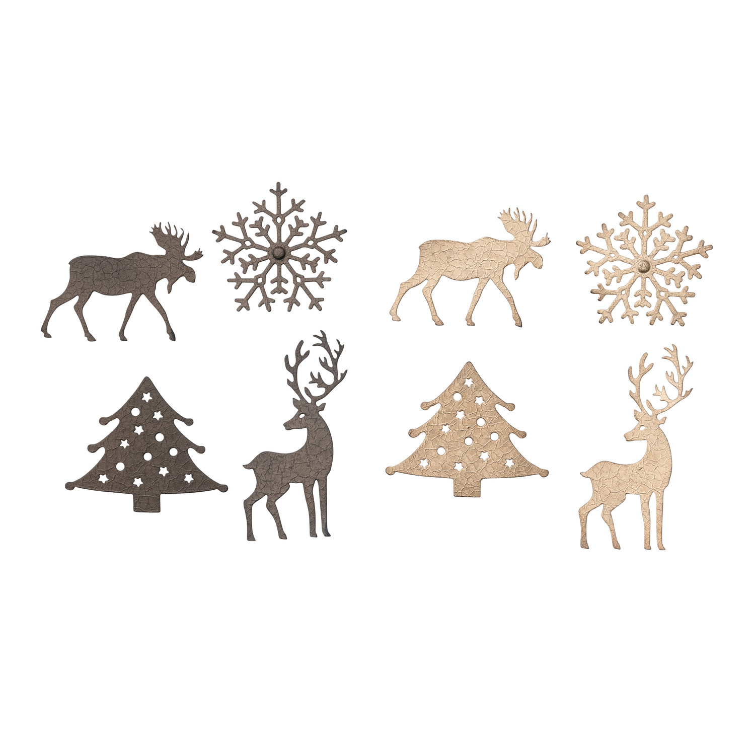Catalog Name: 3-1/2"H - 6"H Textured Laser Cut Metal Holiday Icon Shaped Magnets, 2 Finishes, 4 Styles