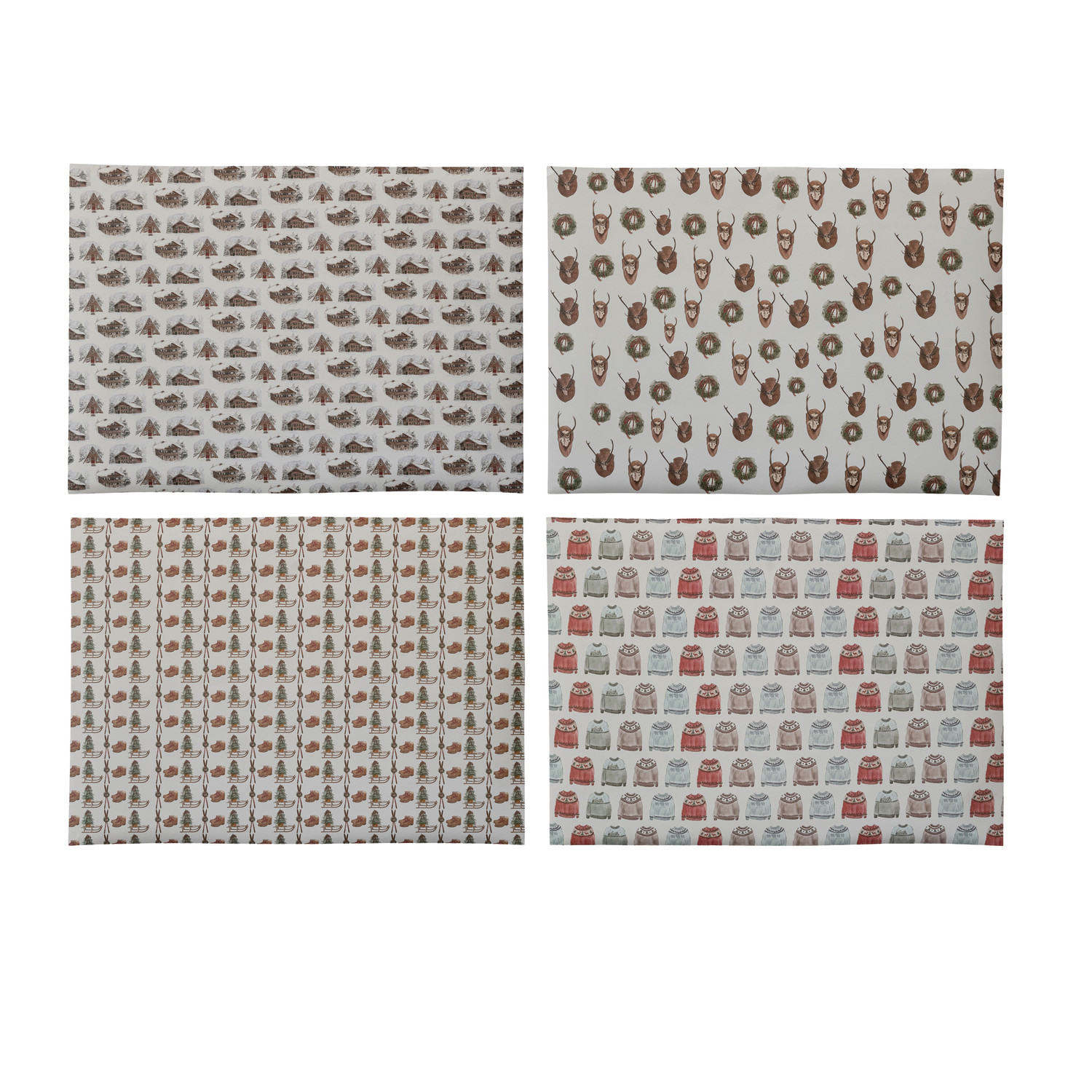 Catalog Name: 28"L x 20"W Handmade Recycled Wrapping Paper Sheets w/ Winter Patterns, Multi Color, Set of 12 Rolls in Kraft Display Box (4 Styles, 3 Rolls Per Style, 3 Sheets Per Roll) ©
