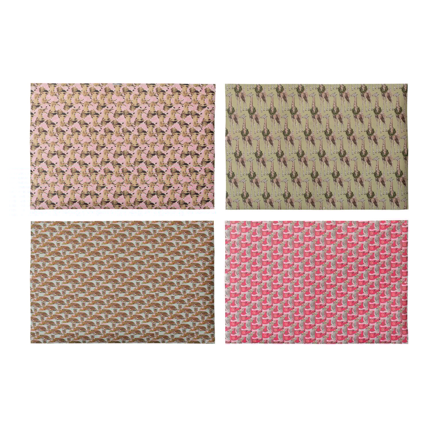 Catalog Name: 28"L x 20"W Handmade Block Printed Recycled Gift Wrapping Paper w/ Safari Animal Pattern, Multi Color, 4 Styles (3 Sheets Per Roll) ©