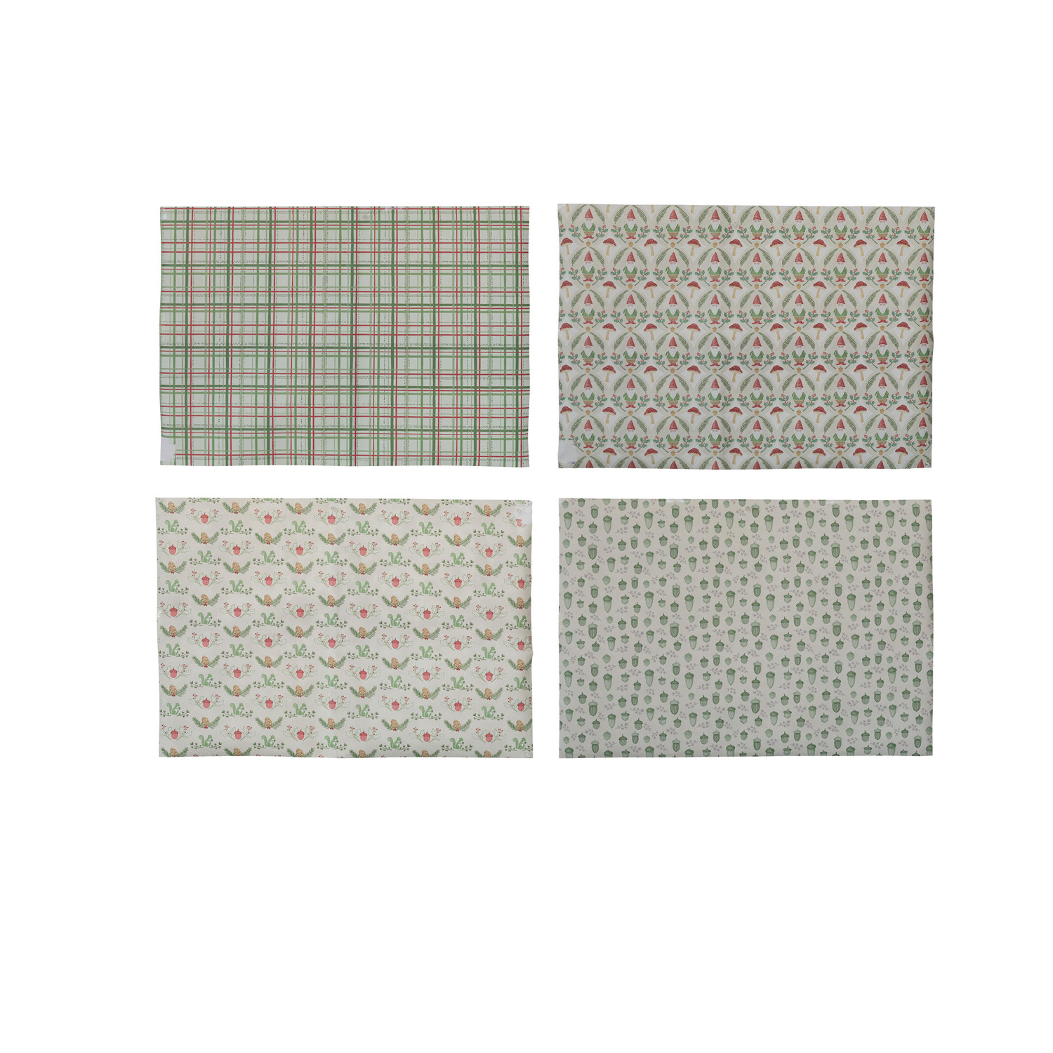 Catalog Name: 28"L x 20"W Handmade Printed Recycled Gift Wrapping Paper w/ Woodland Holiday Pattern, Multi Color, 4 Styles (3 Sheets Per Roll) ©