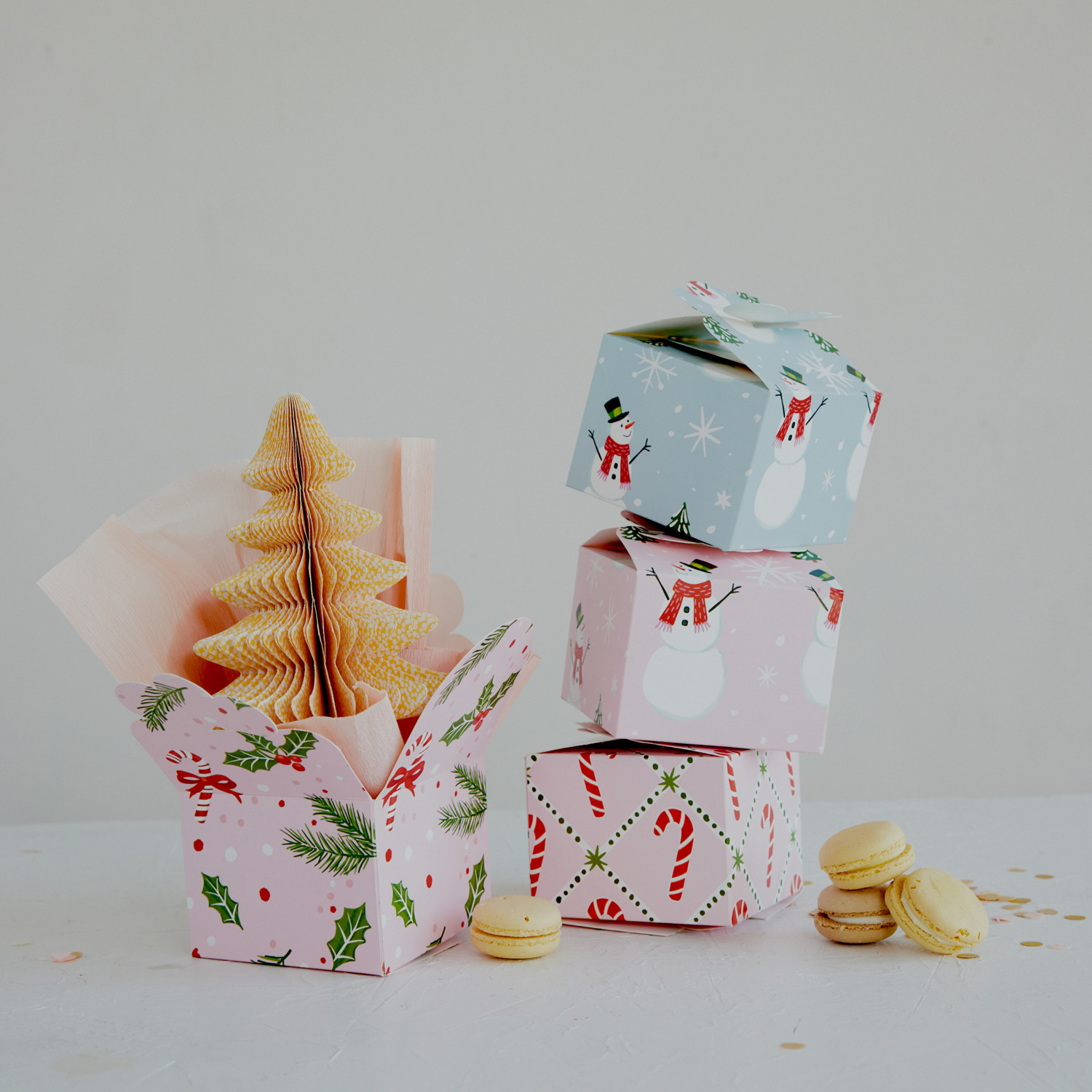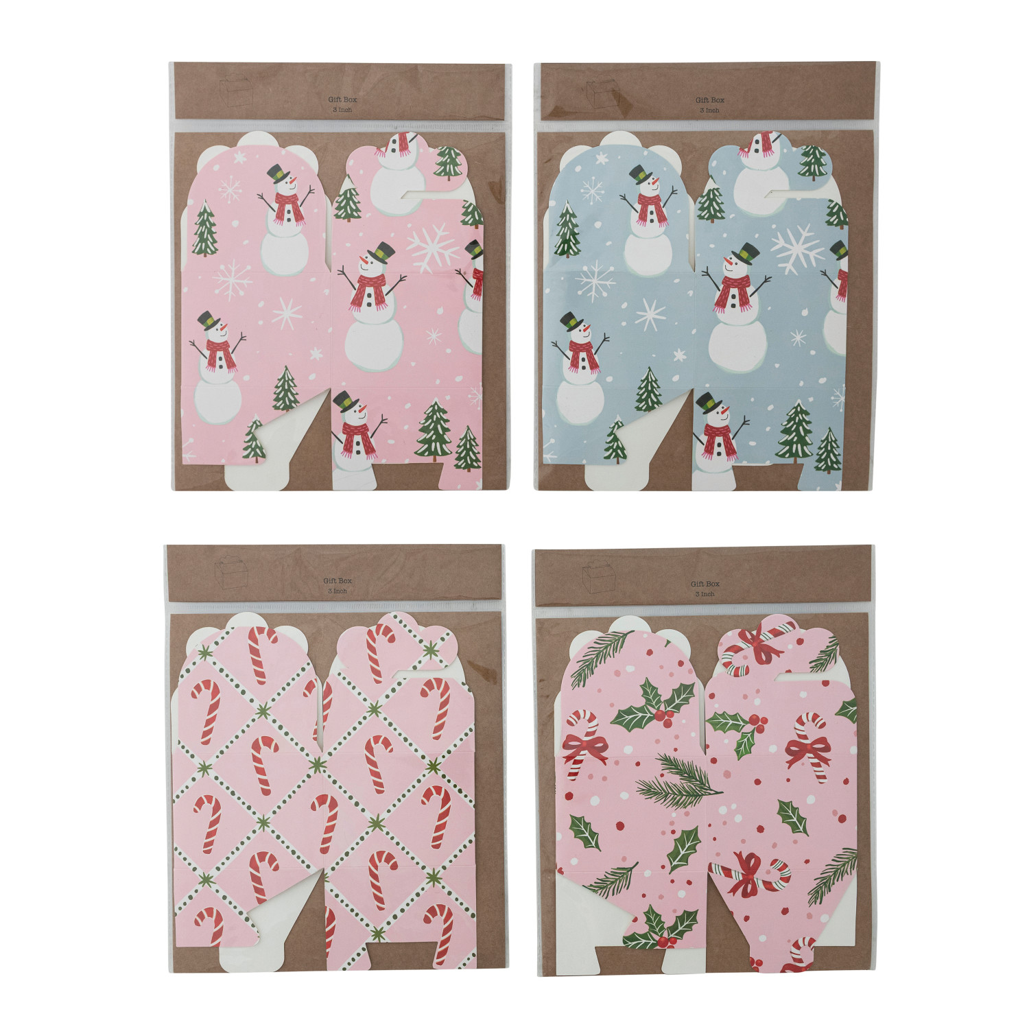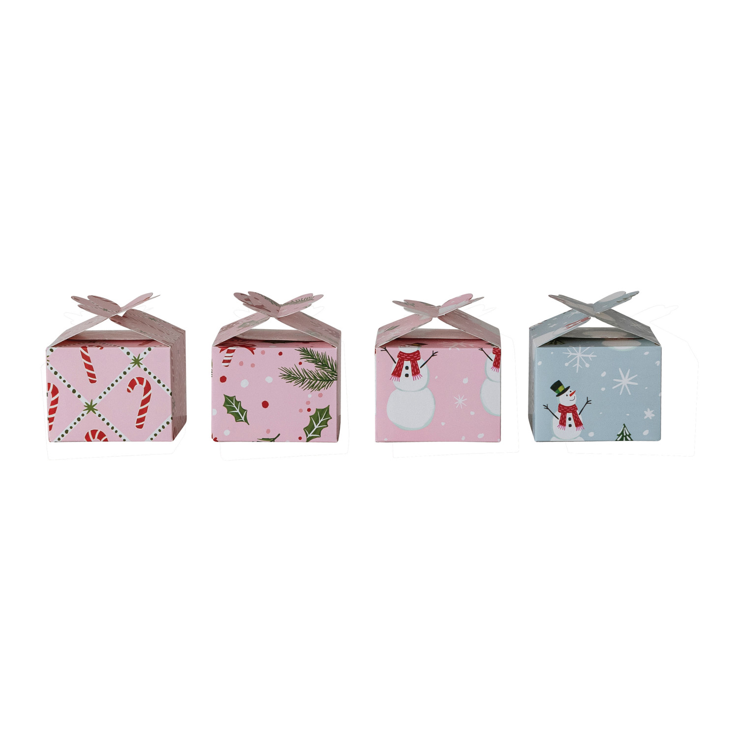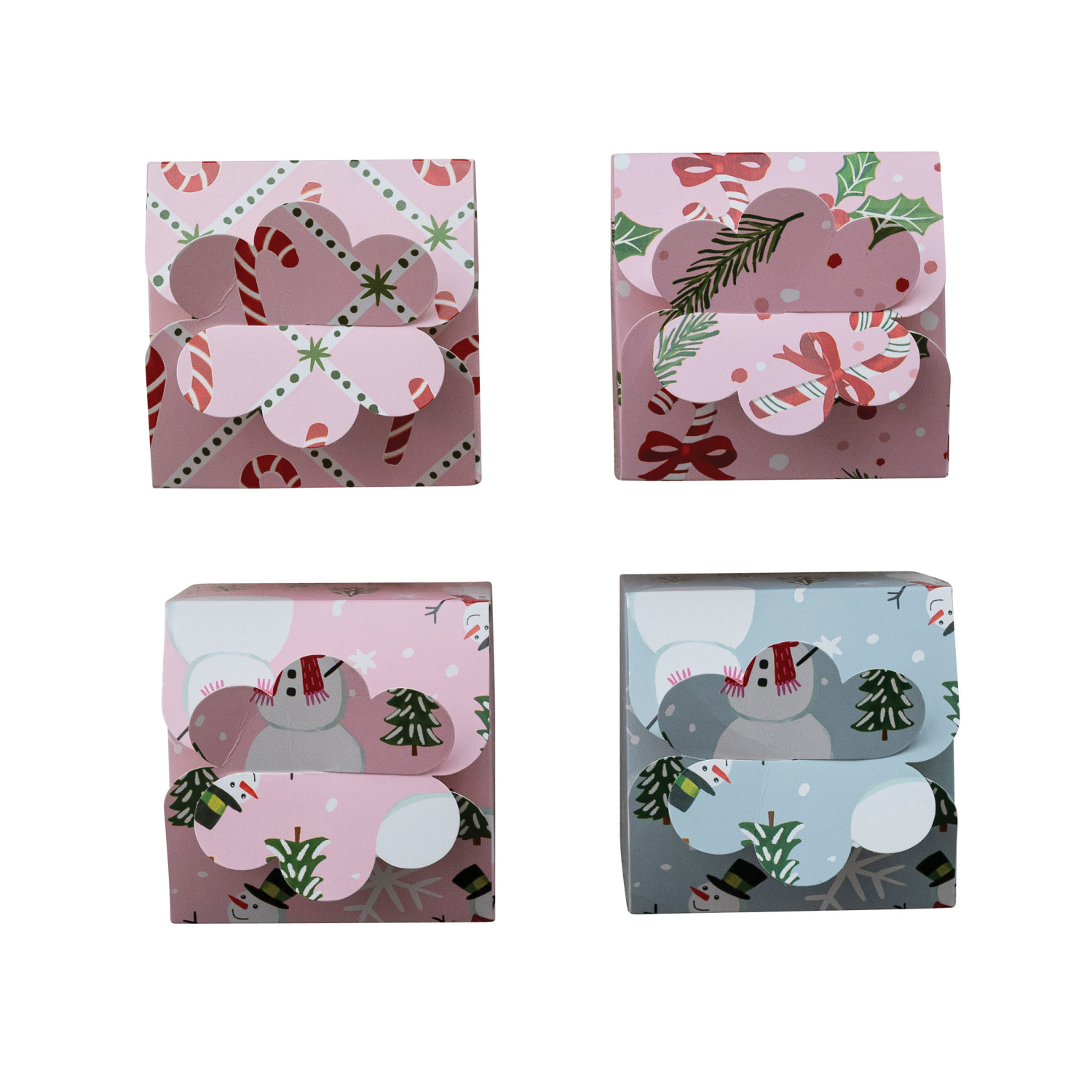 Catalog Name: 4" Square x 3"H Handmade Printed Recycled Paper Interlocking Gift Box w/ Holiday Pattern, Multi Color, 4 Styles ©