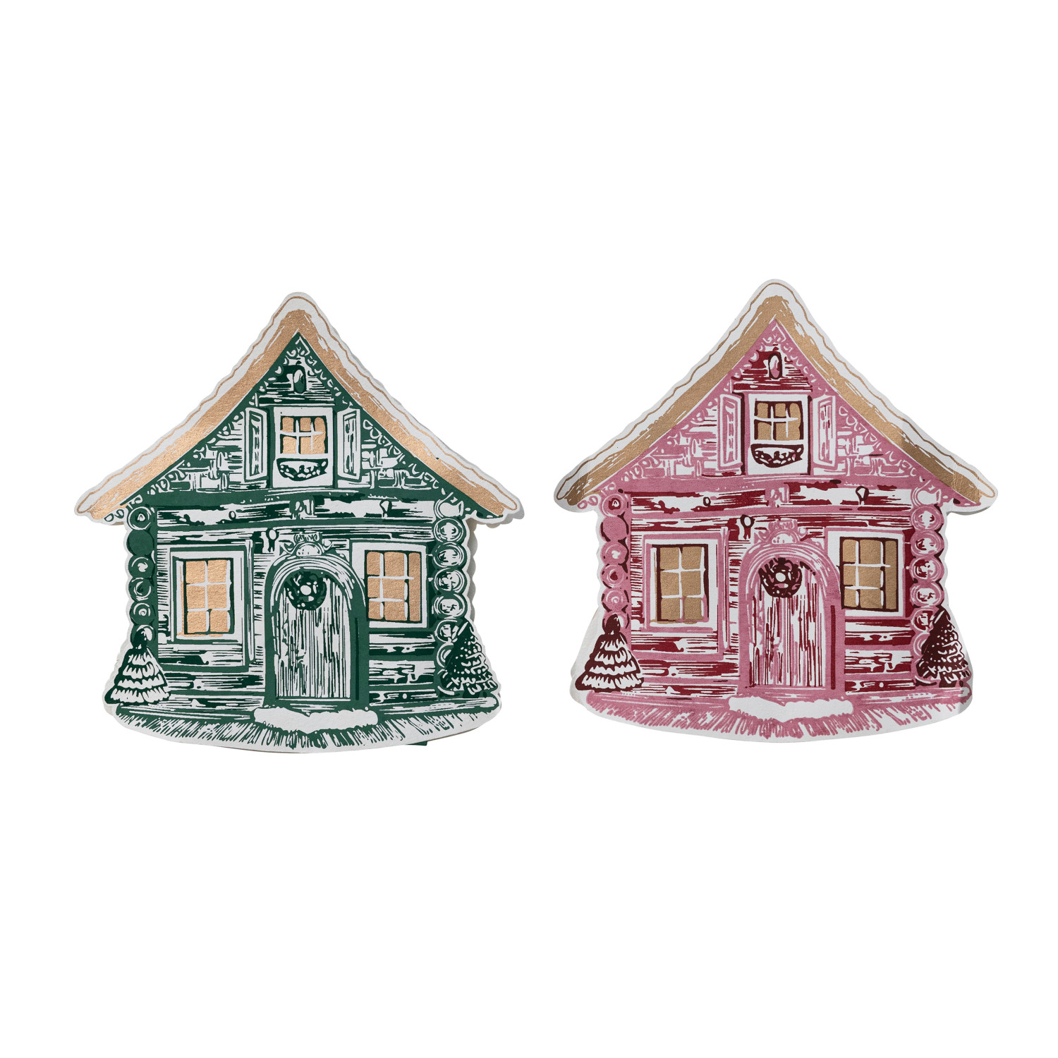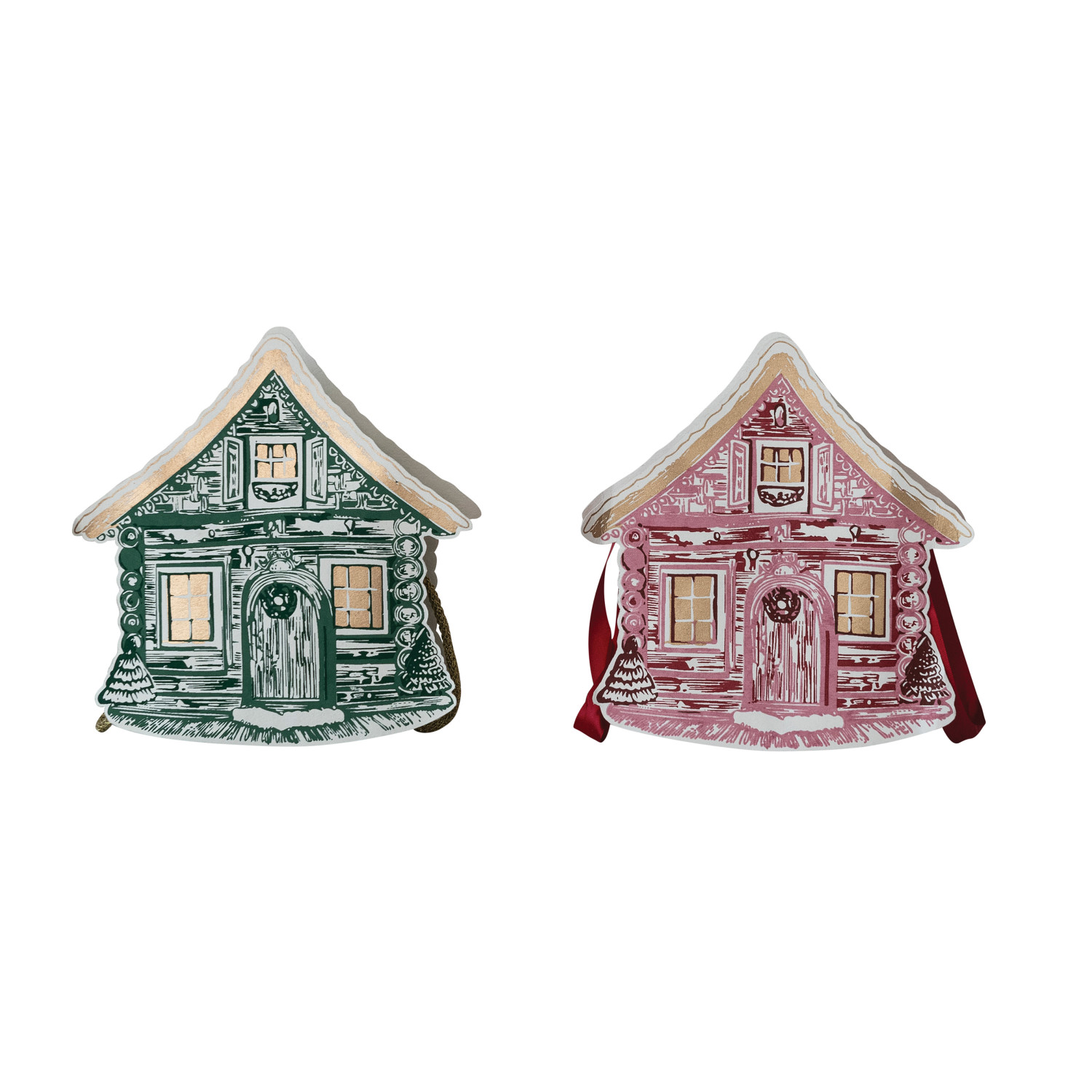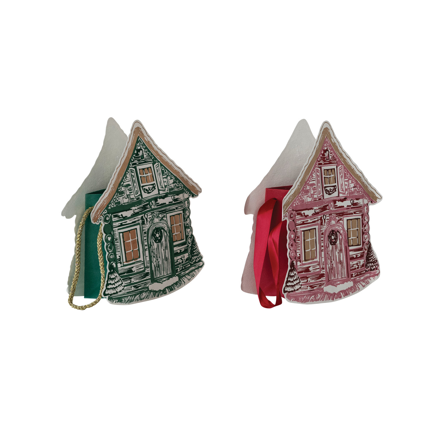 Catalog Name: 5"L x 5-1/2"H Handmade Printed Recycled Paper Cabin Shaped Gift Bag w/ Handle, 2 Colors