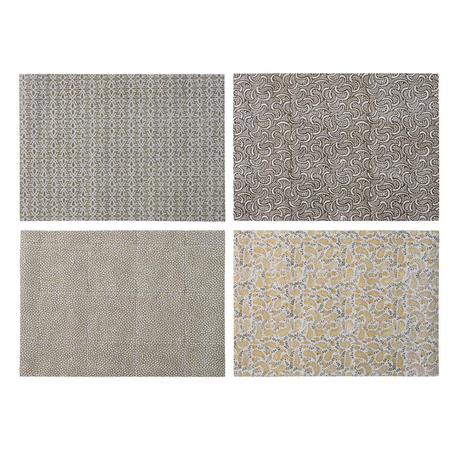 Catalog Name: 28"L x 20"W Handmade Block Printed Recycled Gift Wrapping Paper, Multi Color, 4 Styles (3 Sheets Per Roll)