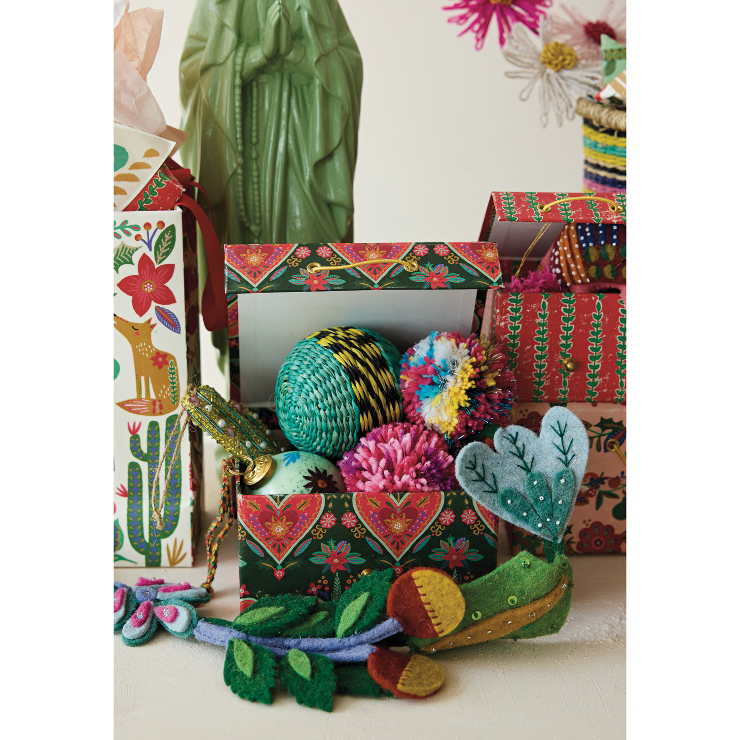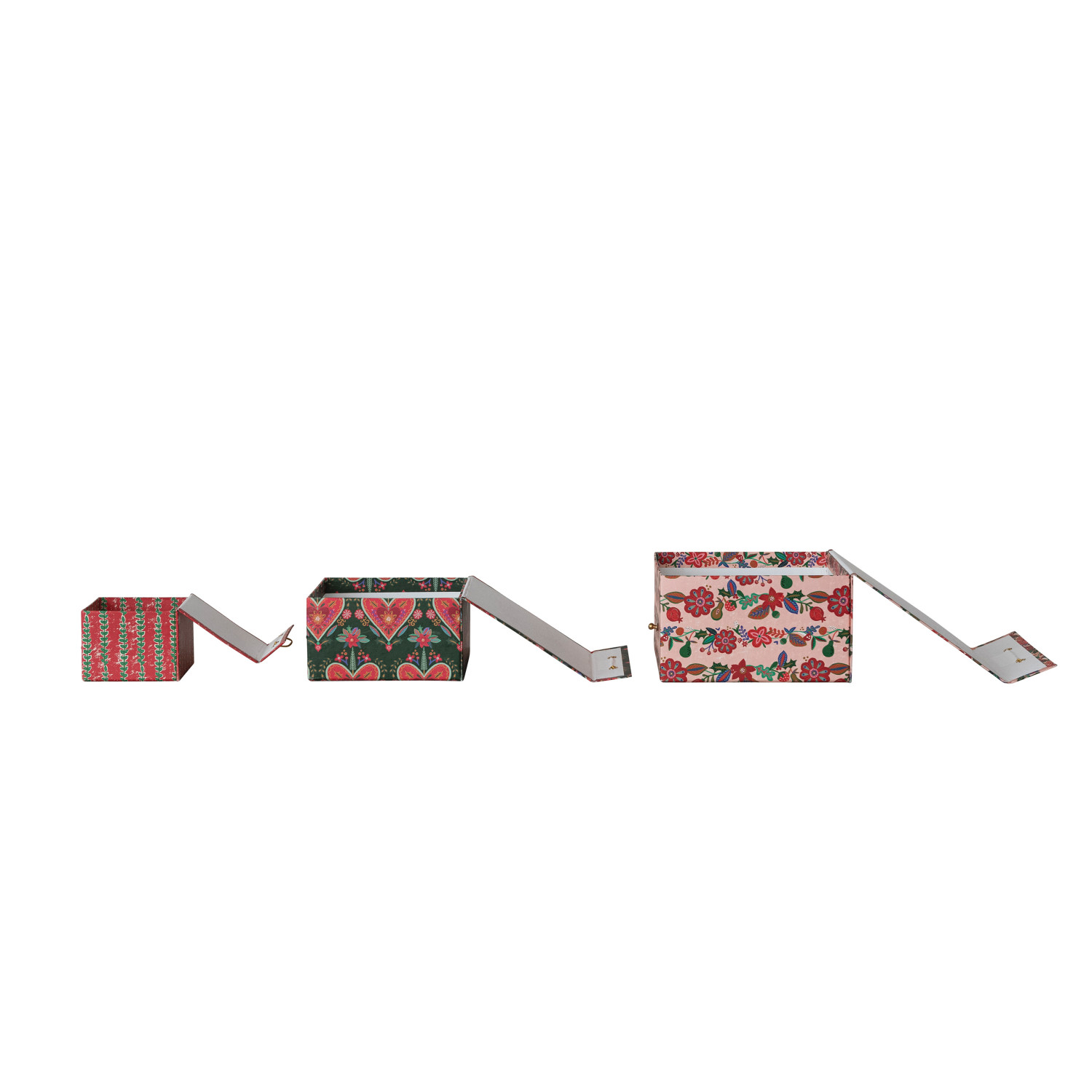 Handmade Printed Recycled Paper Gift Boxes with Seasonal Patterns & Closures, Set of 3 ©