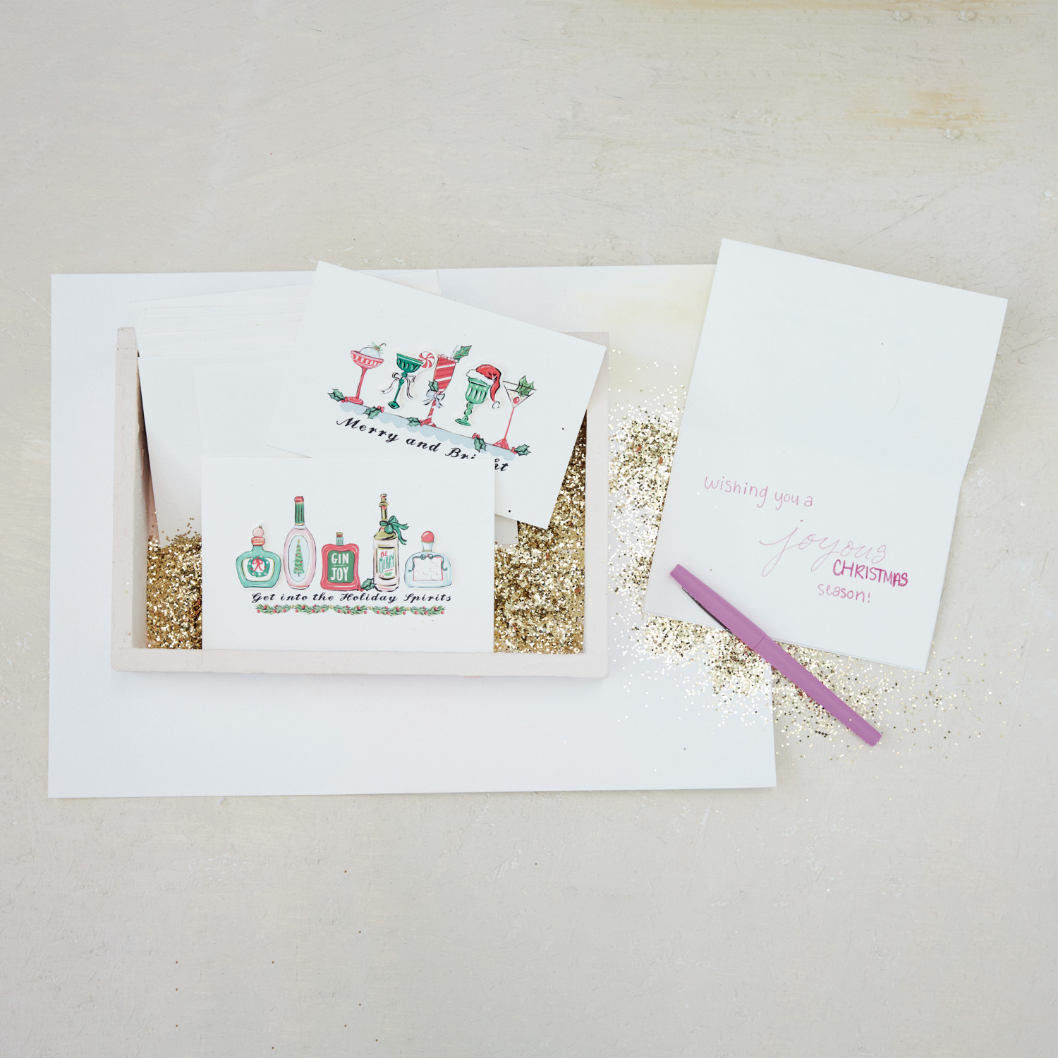 Catalog Name: 6"L x 4"W Handmade Printed Recycled Paper Christmas Cards w/ Cocktails & 6 Envelopes, Multi Color, Set of 6, 2 Styles (Blank Inside) ©