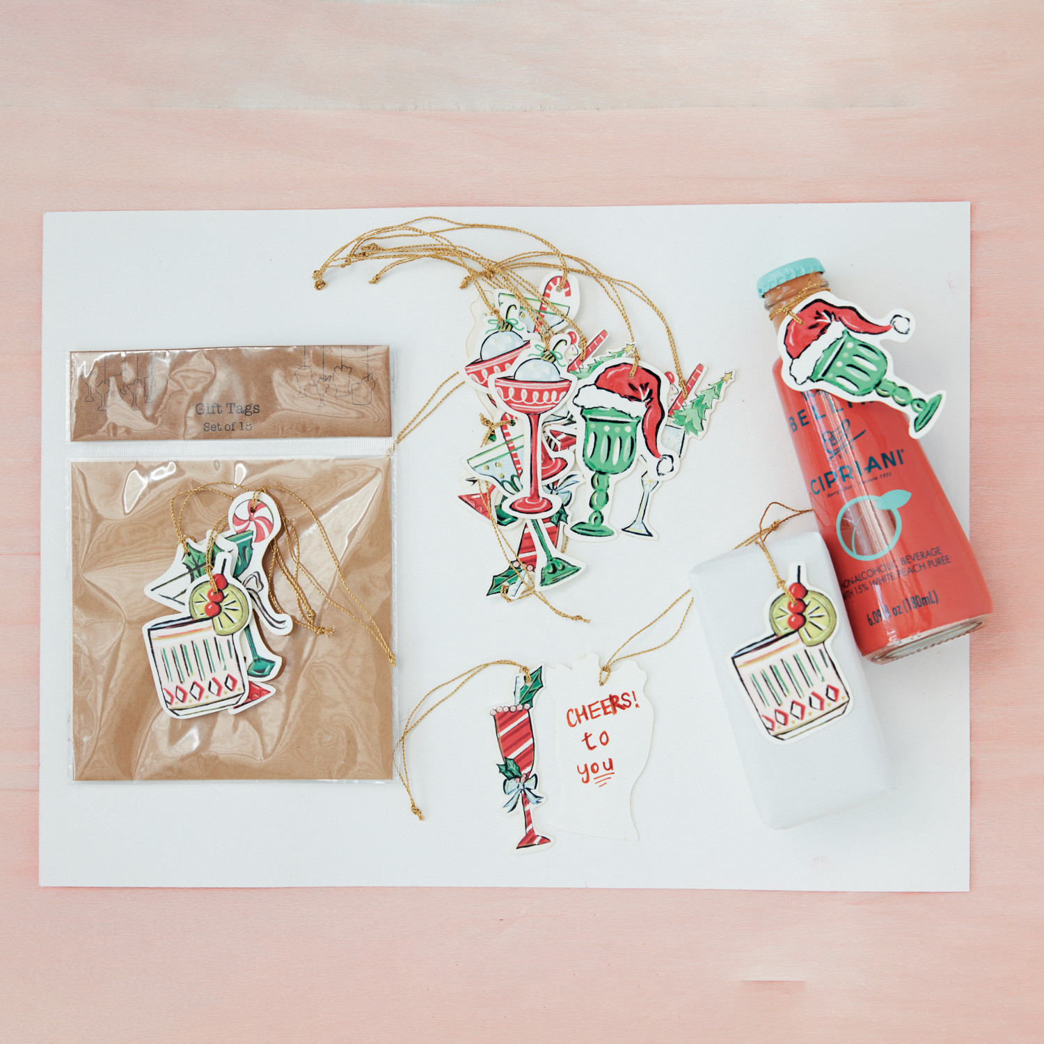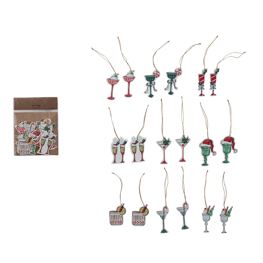 Handmade Printed Recycled Paper Cocktail Gift Tags/Ornaments, Set of 18 ©