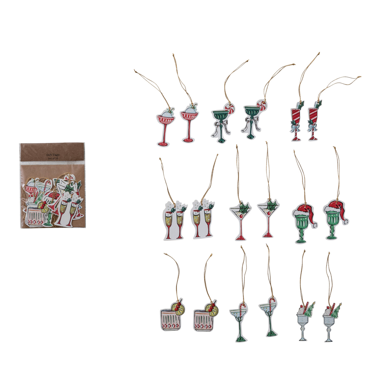 Catalog Name: 3"H Handmade Printed Recycled Paper Cocktail Gift Tags/Ornaments, Multi Color, Set of 18 ©