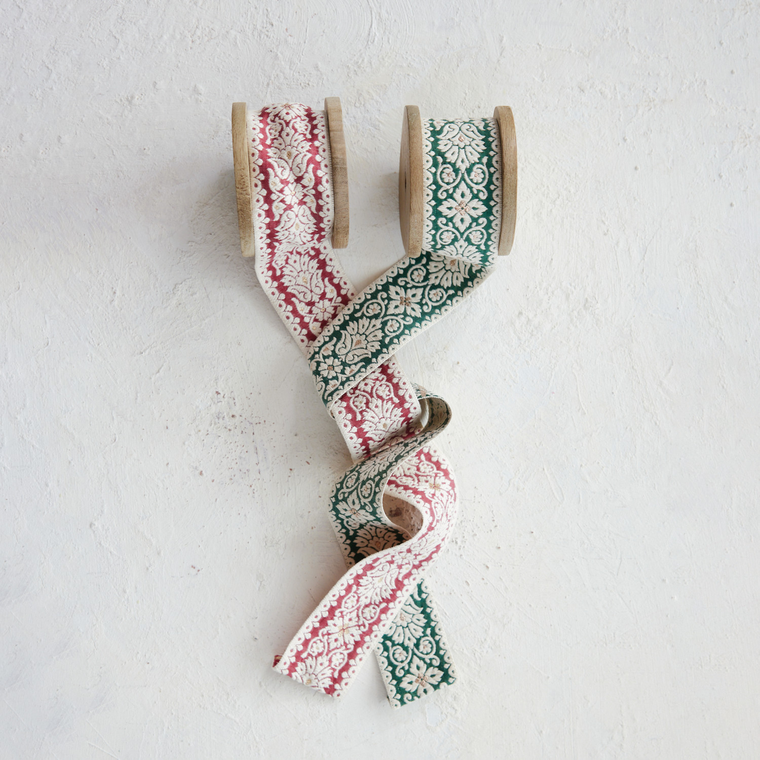 6 Yard 1-3/4"W Cotton & Fabric Jacquard Ribbon on Wood Spool, 2 Styles