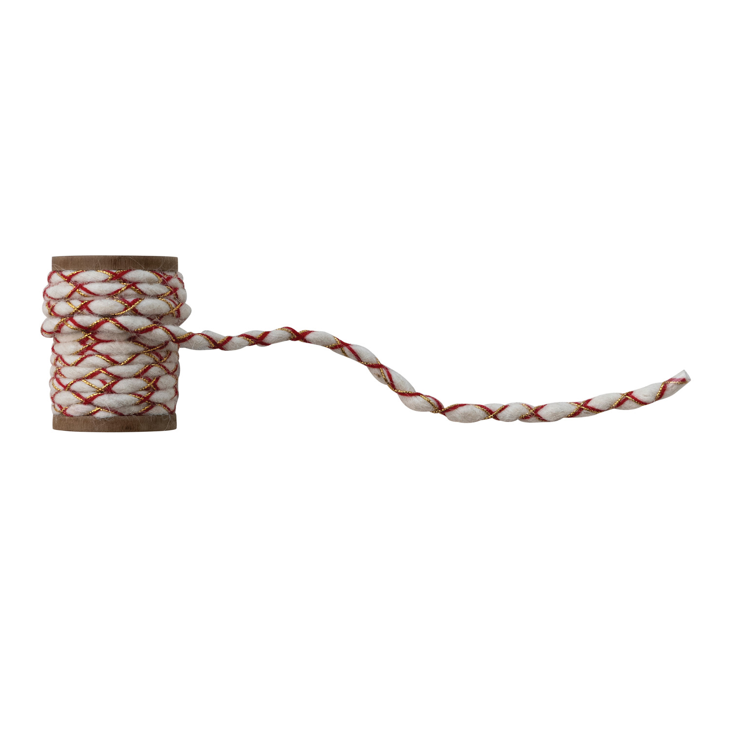 Catalog Name: 10 Yard 1/4"W Acrylic & Woven Fabric Cord w/ Metallic Thread on Wood Spool, White, Red & Gold Color
