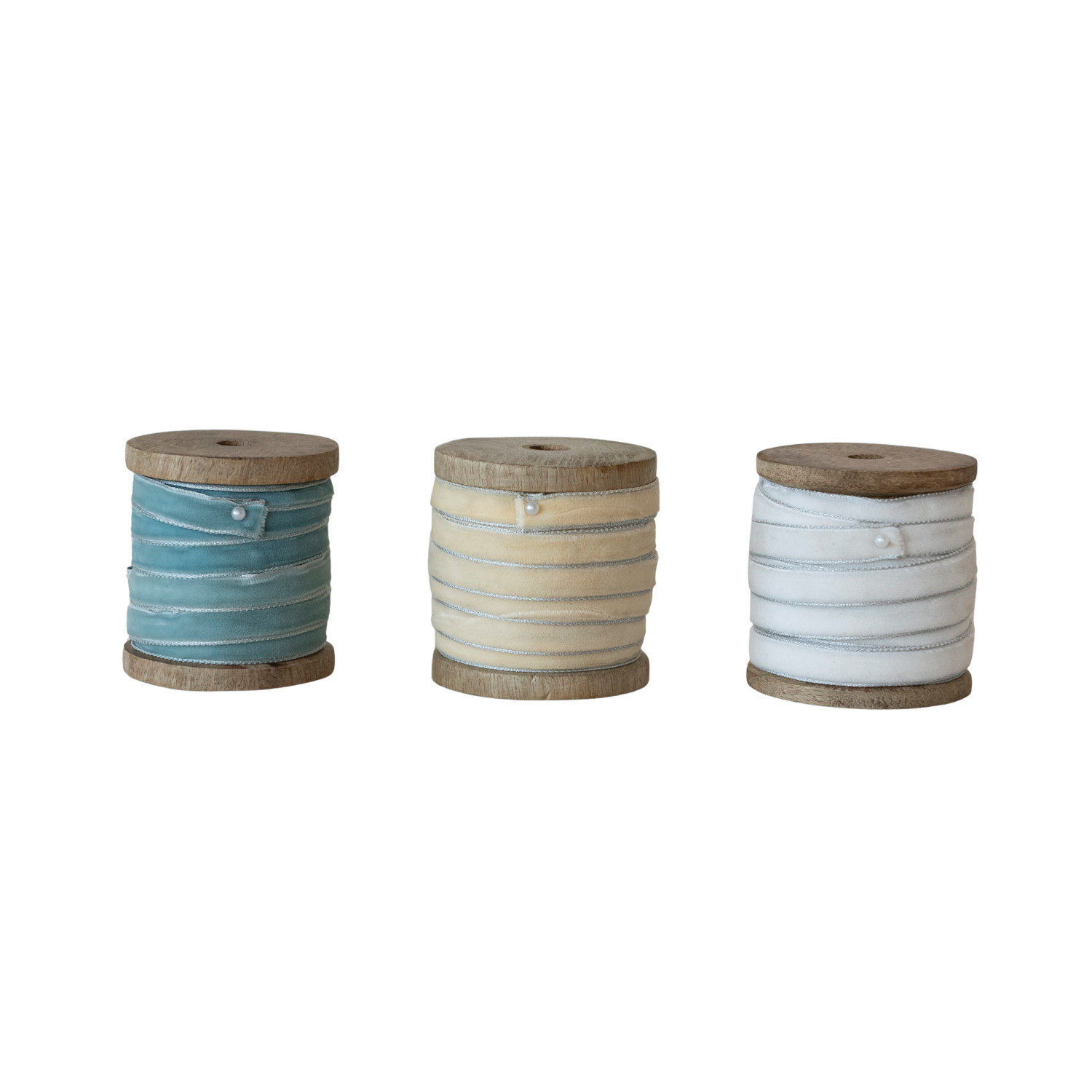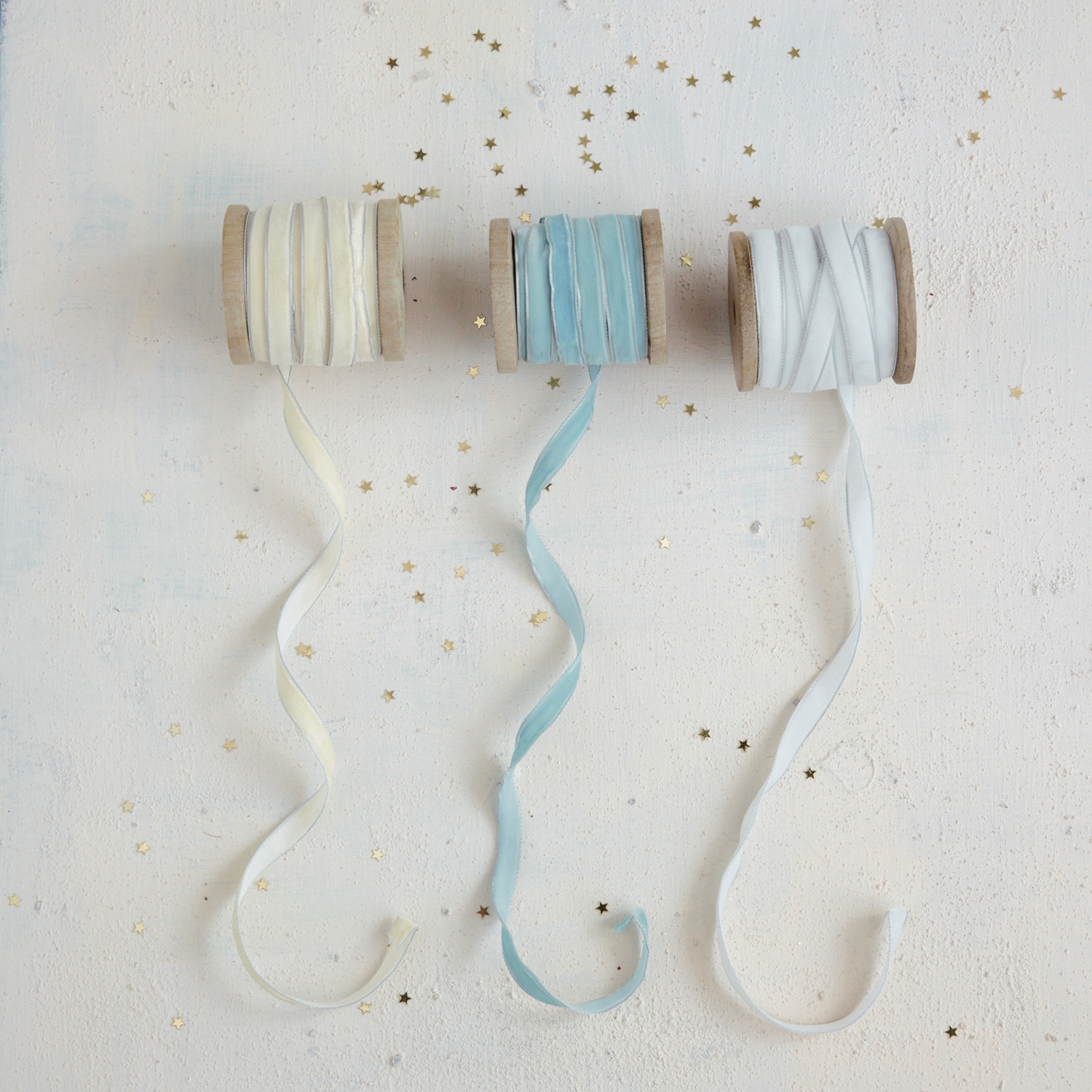 10 Yard 1/4"W Velvet Ribbon with Metallic Silver Edges on Wood Spool, 3 Colors