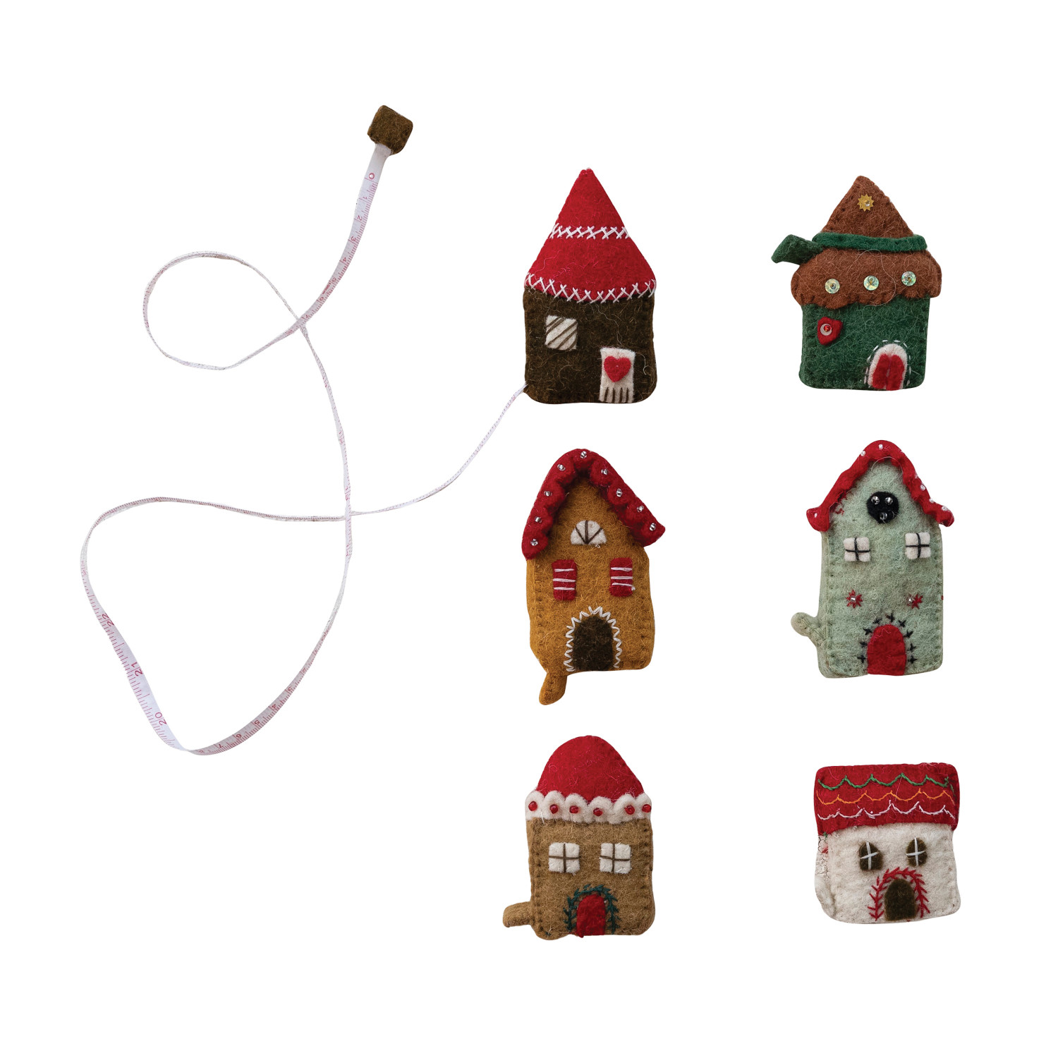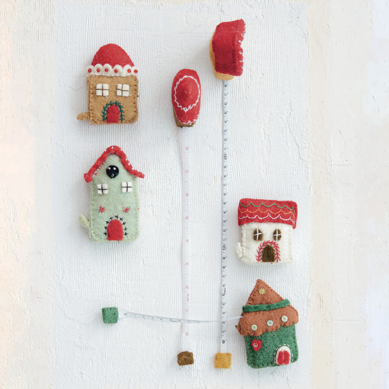 Handmade Embroidered Wool Felt House Shaped Tape Measure, 6 Styles (Each Measures 5 Feet)