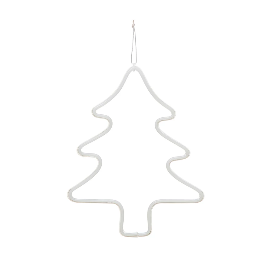 This contemporary wire wall décor features the minimalist silhouette of a holiday tree equipped with glowing LED light. Indulge in the enchantment of the holiday season with our delightful collection of LED-powered decorative accents, featuring charming advent calendars, elegant tabletop trees, cozy stoneware houses, and captivating wall hangings.