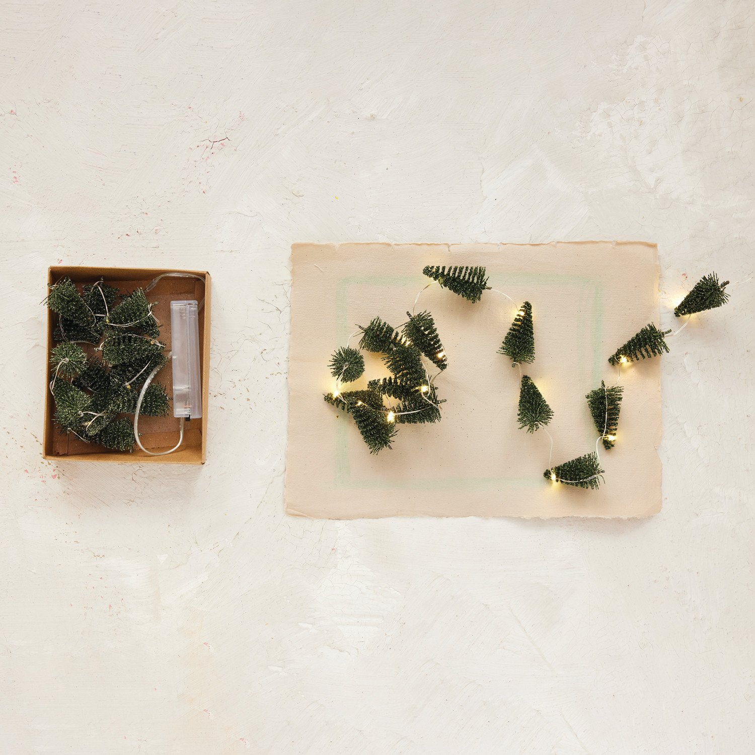 Catalog Name: 48"L x 1-1/4"H Plastic Bottle Brush LED Tree Light String w/ 15 Lights, Snow Finish, Green (Requires 2-AA Batteries)