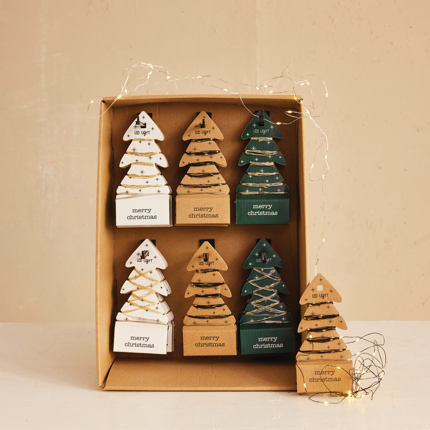 118"L LED String Lights on Tree Shaped Display Cards, 3 Styles