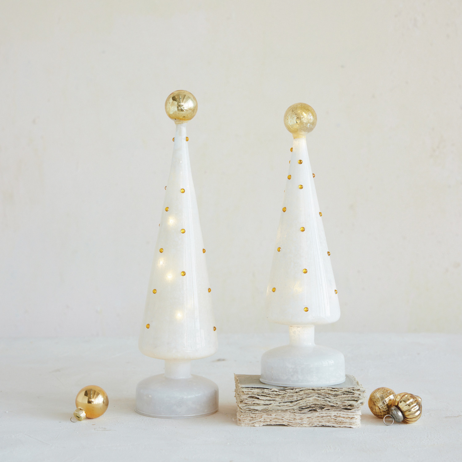 Mercury Glass Tree with Embossed Dots & LED Light, Gold Finish & White