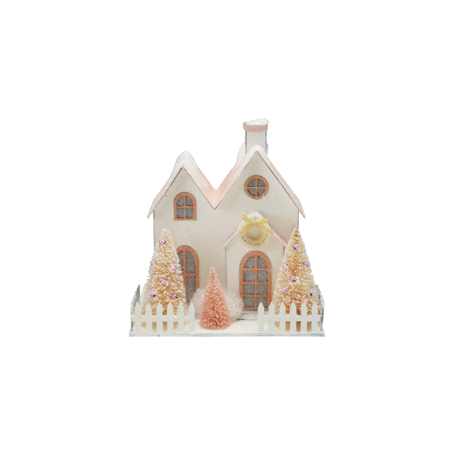 Paper House with Sisal Bottle Brush Trees, Glitter & LED Light (Batteries Included)