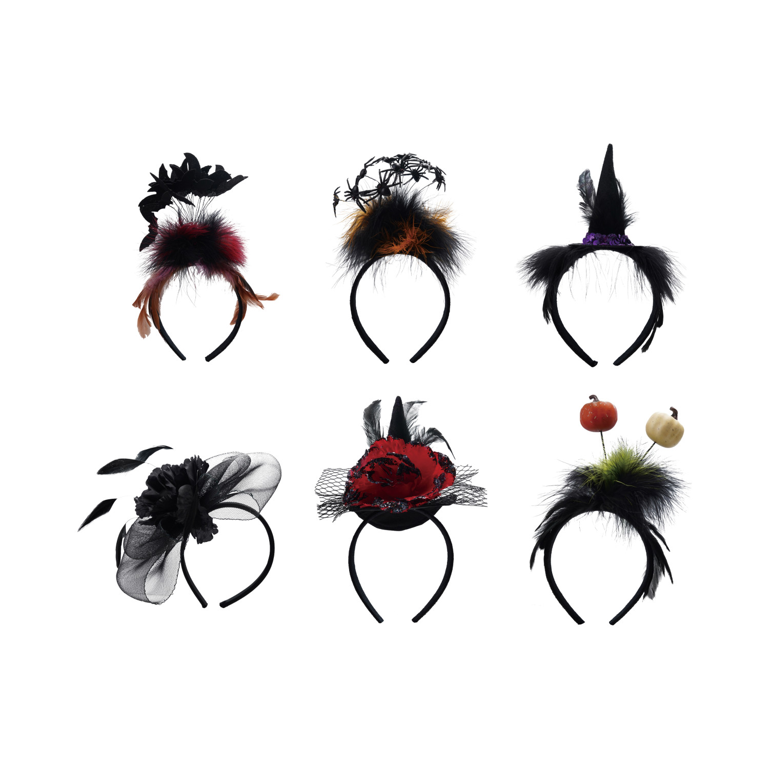 Catalog Name: 8"H - 11"H Plastic & Feather Halloween Headband, Multi Color, 6 Styles