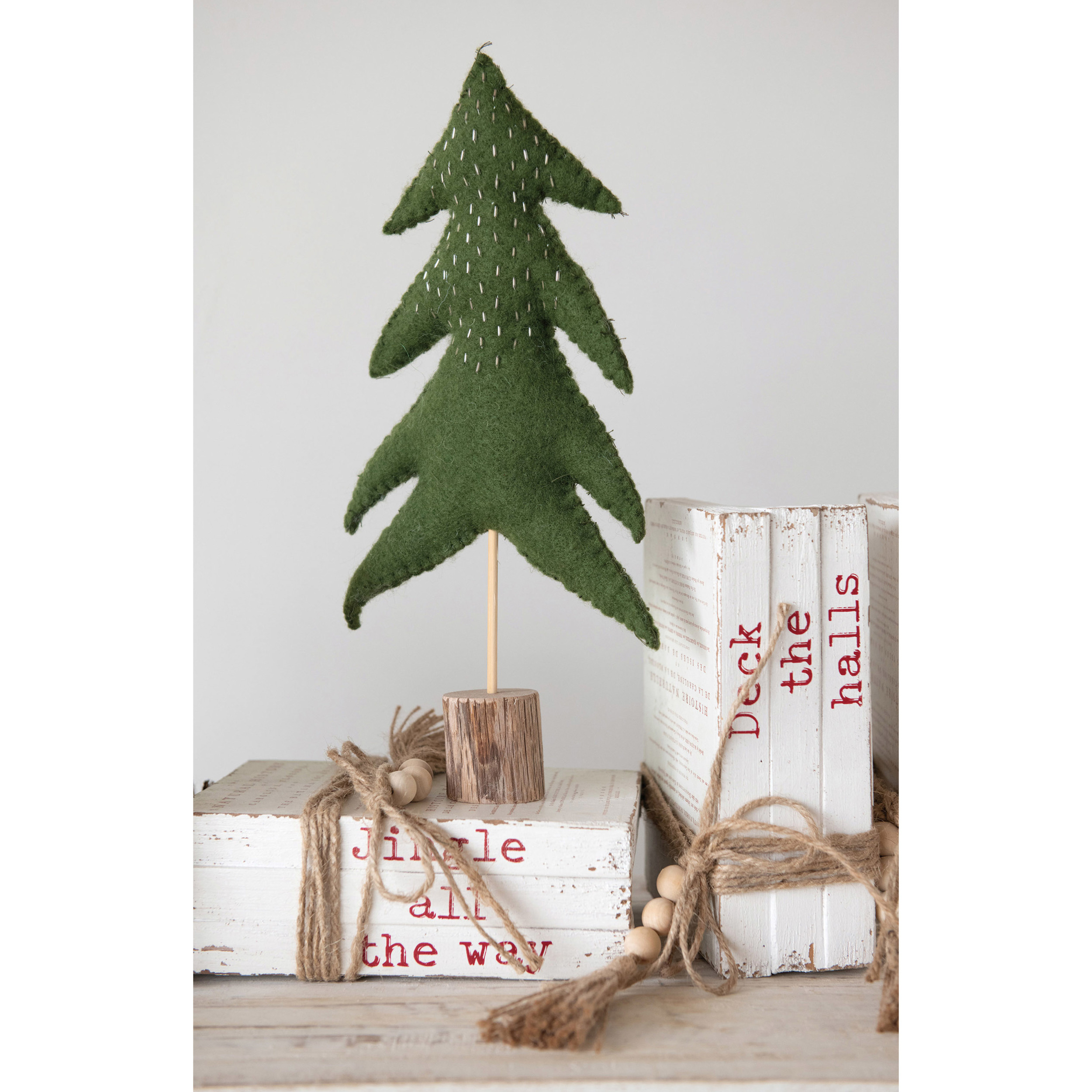 These faux book blocks are an easy way to add festive decor to your shelves. Made out of wood, these come in a set of 6 and each feature a holiday saying on them. With wood beads and a jute tie, these adorable decorations are a festive and stylish way to take up space.