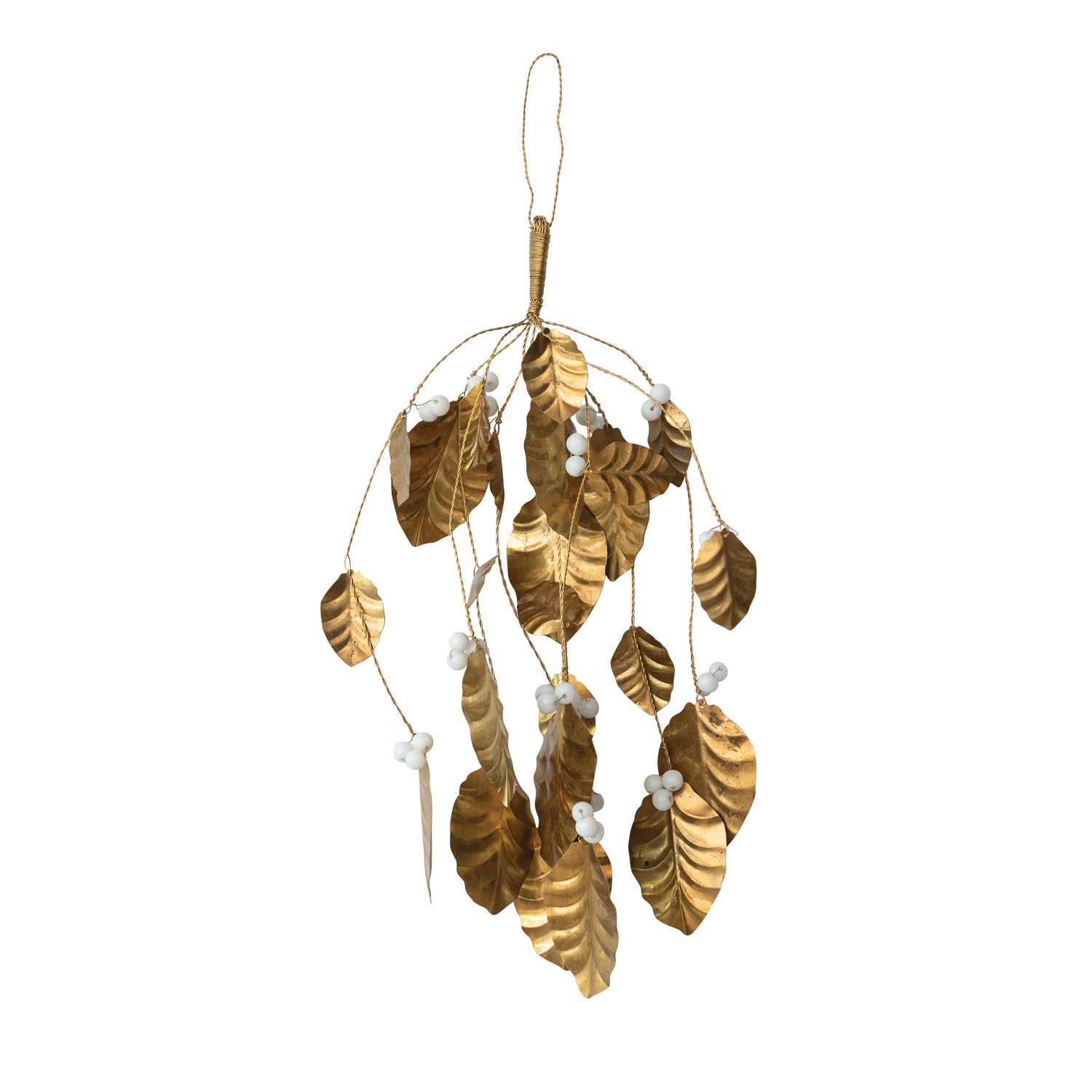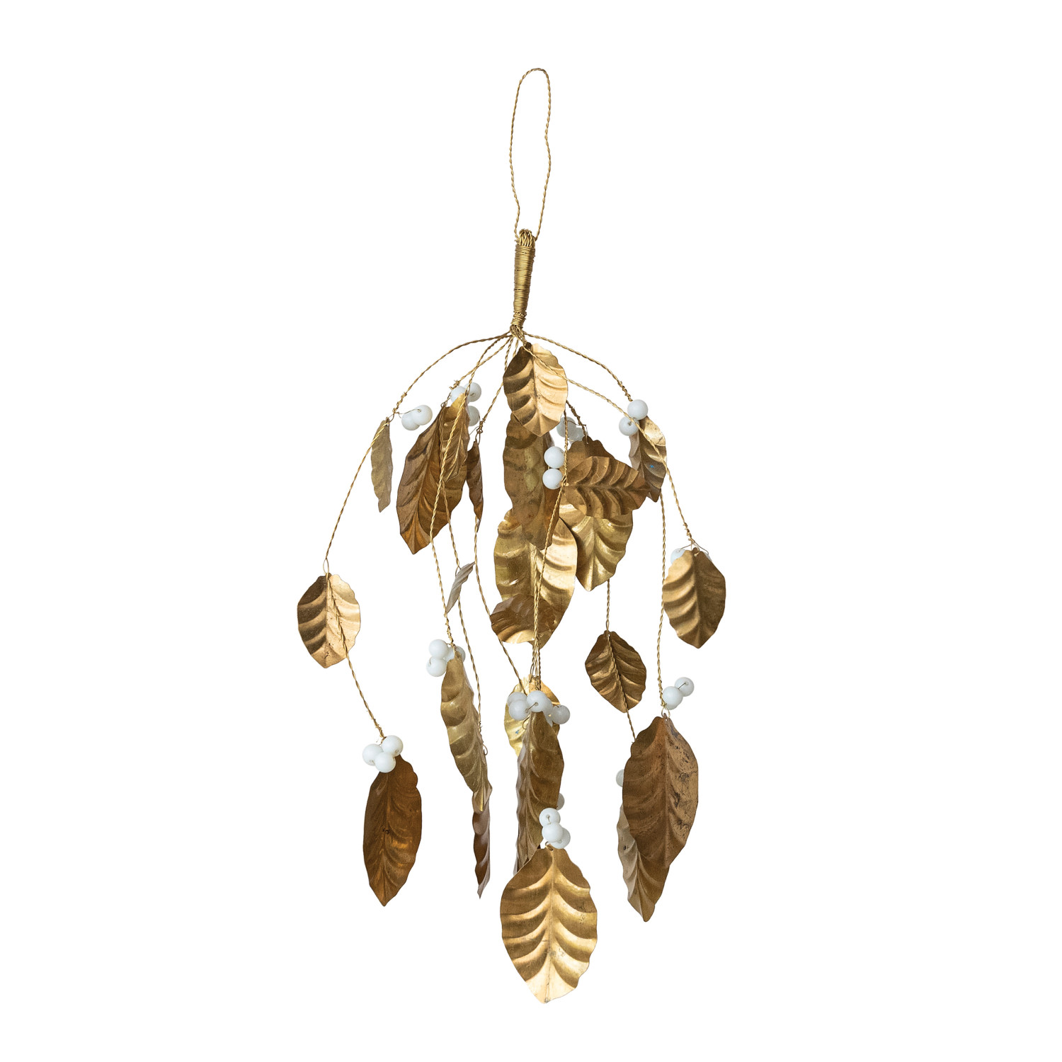Catalog Name: 12"H Brass Leaf & Acrylic Bead Bunch, Gold Finish & White