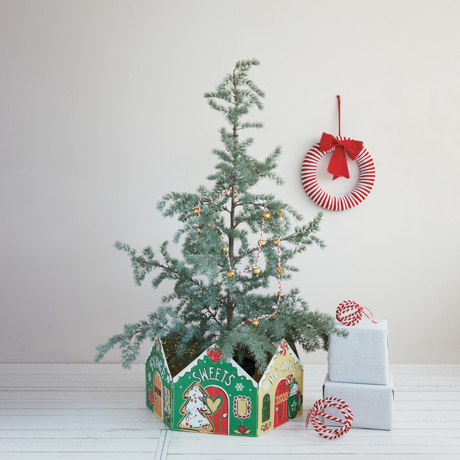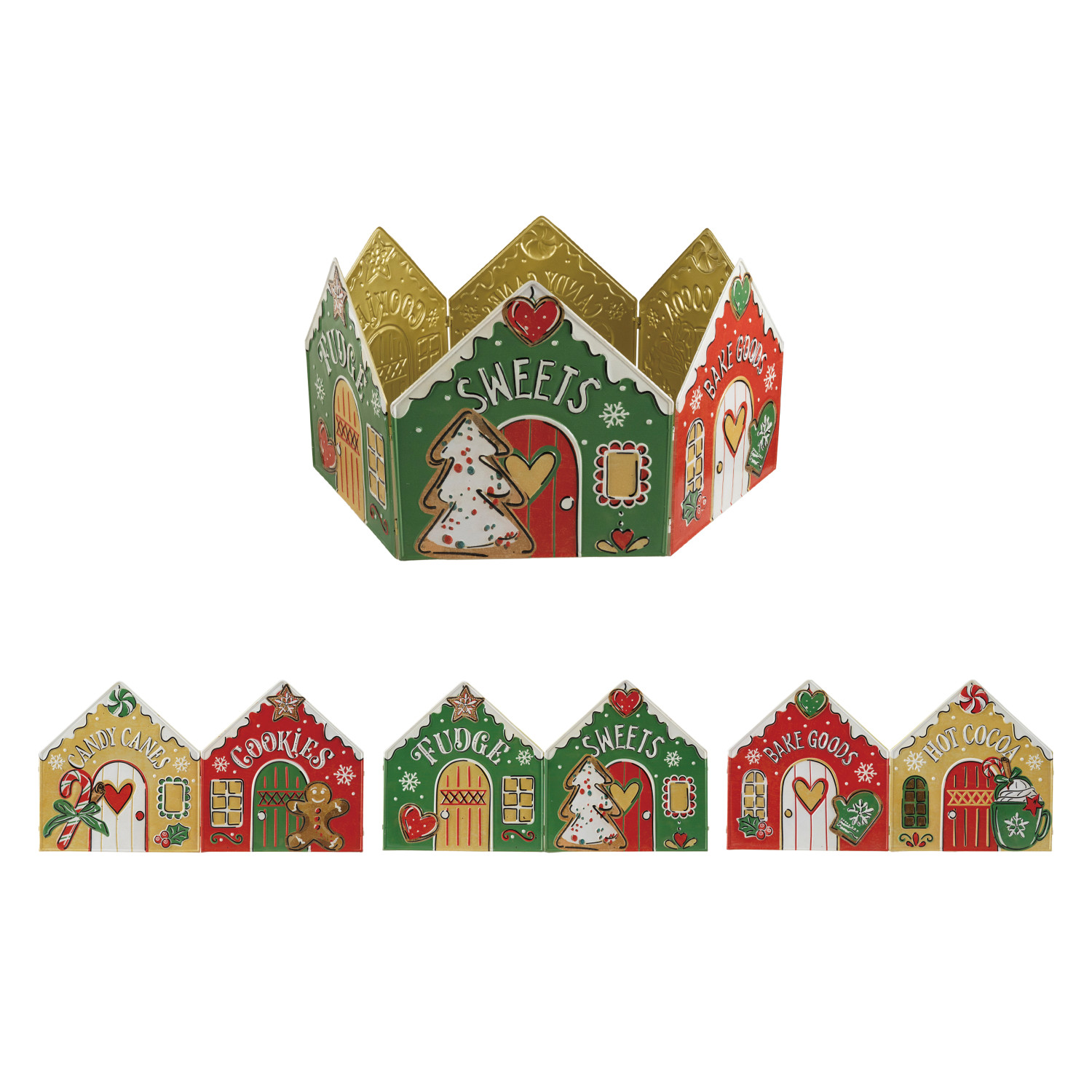 Embossed Metal Folding Tree Collar with Holiday Store Fronts, KD