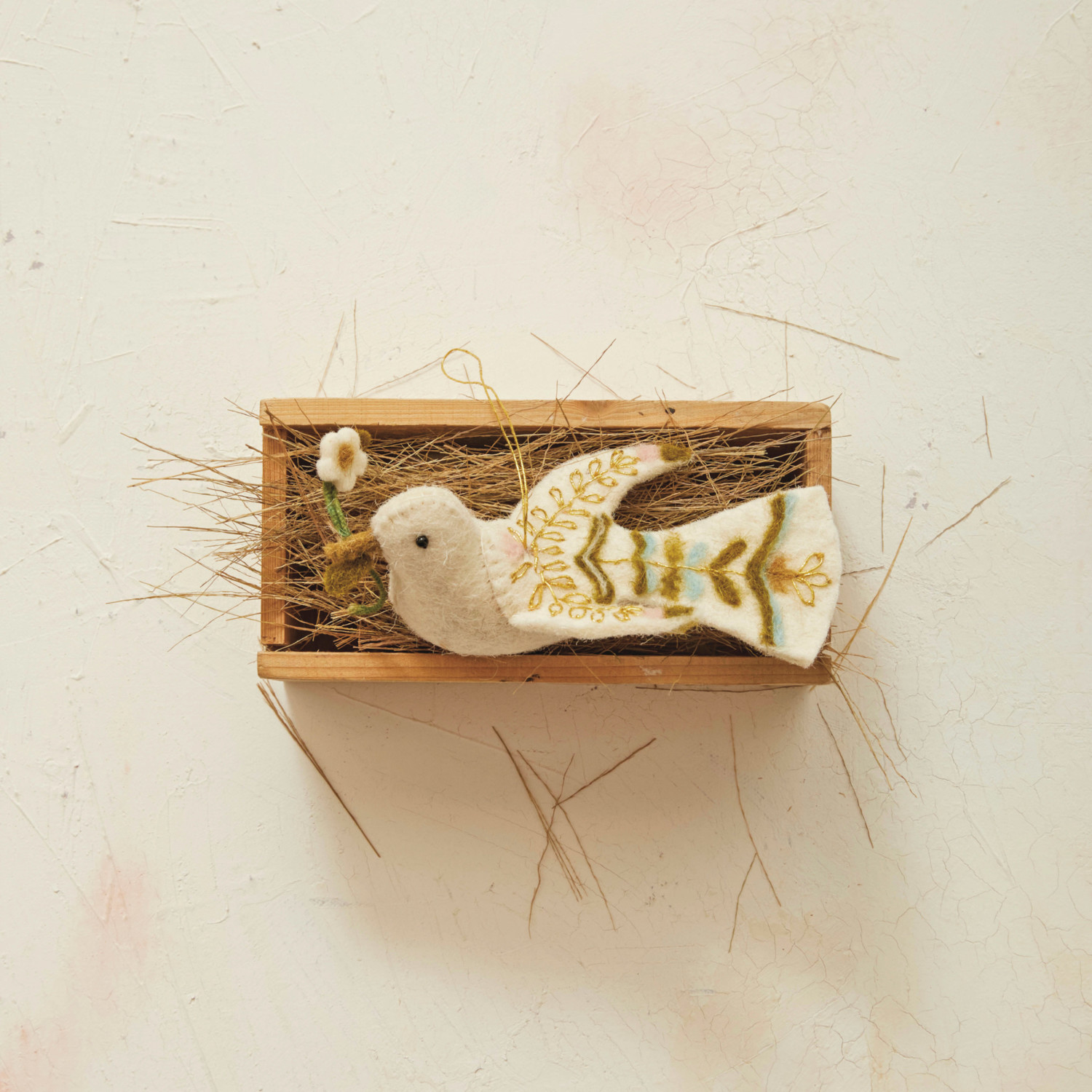 Catalog Name: 6"L Handmade Wool Felt Dove Ornament w/ Embroidery, Multi Color ©