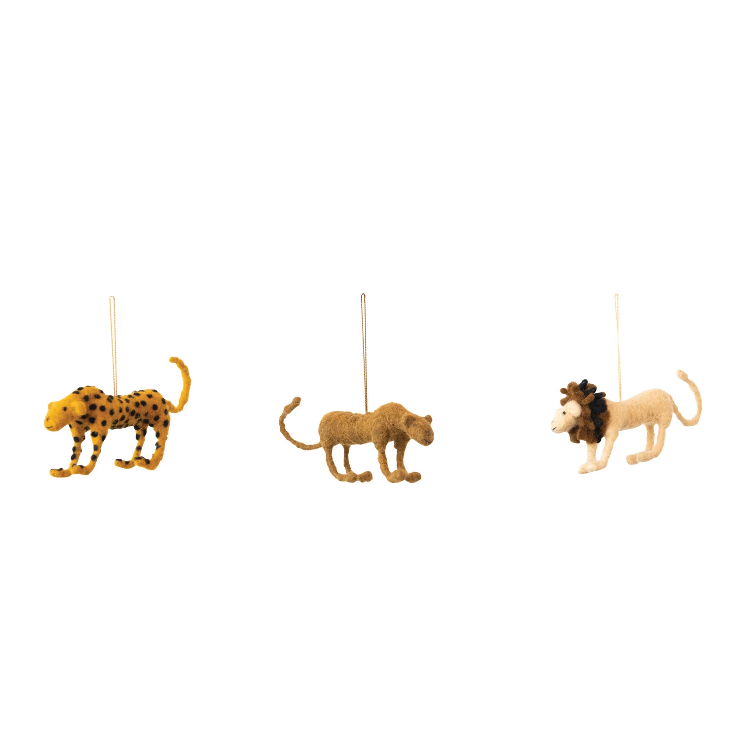 Catalog Name: 7-1/2"L x 4-1/2"H Handmade Wool Felt & Wire Exotic Animal Ornament, 3 Styles