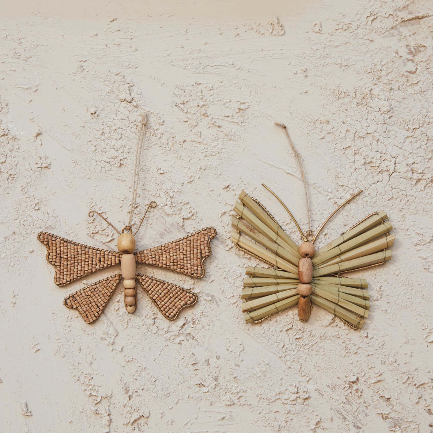 Catalog Name: 6"L - 6-3/4"L Handmade Mango Wood Bead & Bamboo Butterfly Ornament, Multi Color, 2 Styles