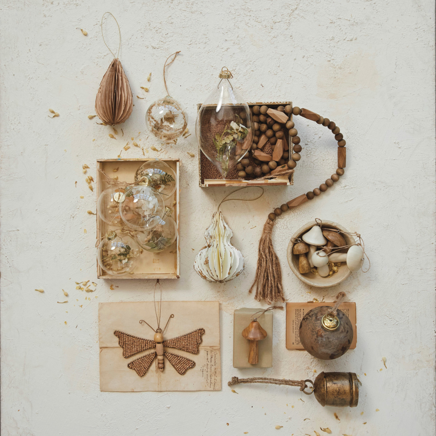 This handmade mango wood bead and bamboo butterfly ornament is a unique and charming way to add some personality and flair to the home. The ornament features a butterfly shape with mango wood beads for the body, bamboo strips for the wings, and metal wires for the antennae and legs. The ornament has a multi color scheme that gives it a natural and rustic look. The ornament has a loop for easy hanging. It comes in two style. Decorate the tree, wall, or window, or use it as a gift or a craft, this ornament will bring a touch of garden, boho, or tropical to any space. It also makes a great gift for friends and family who love handmade, mango wood, or bamboo crafts. A unique and charming butterfly ornament with mango wood beads, bamboo wings, and metal accents. A natural and rustic accessory for any garden, boho, or tropical style decor. Ideal for hanging on the tree, window, or wall, or using as a gift or a favor.