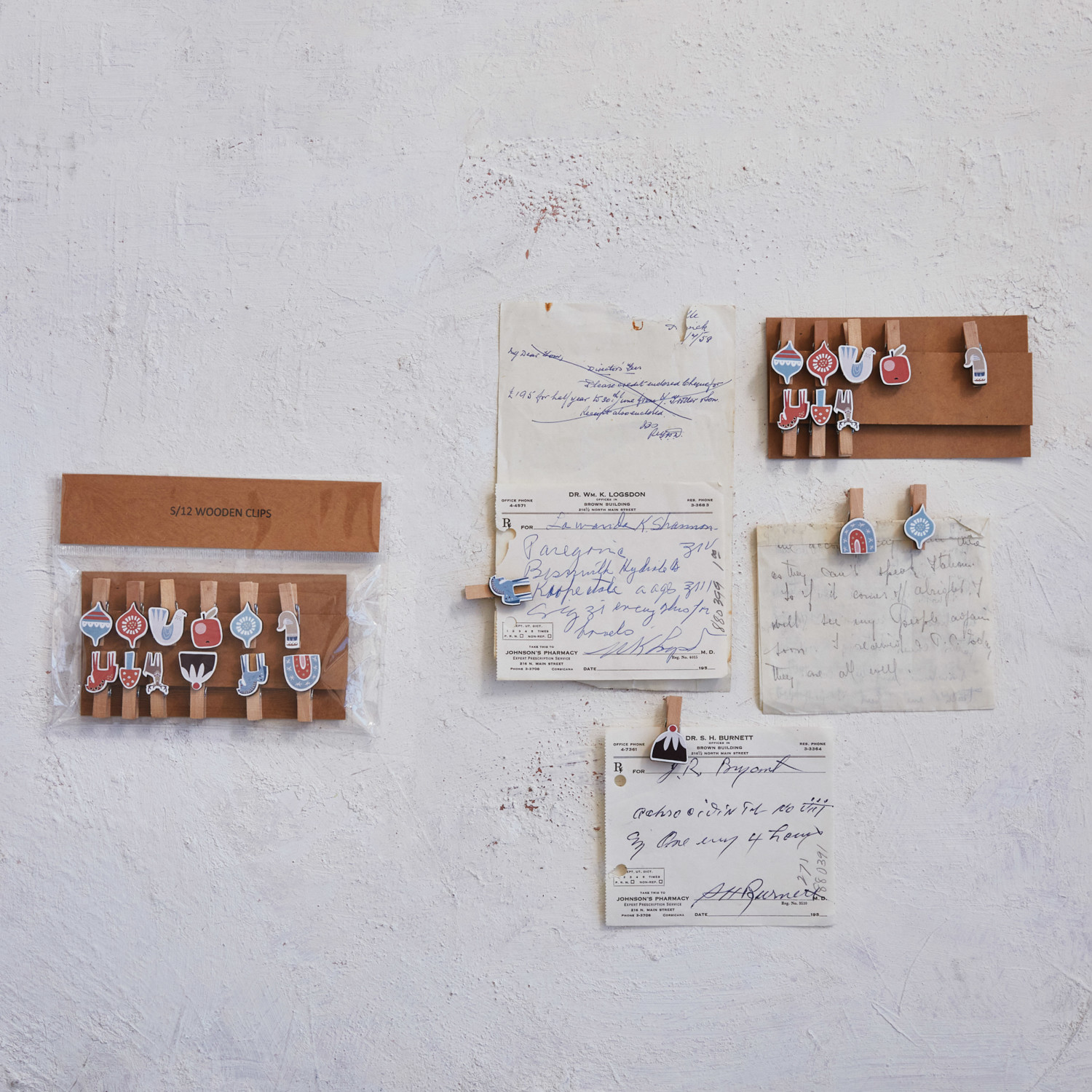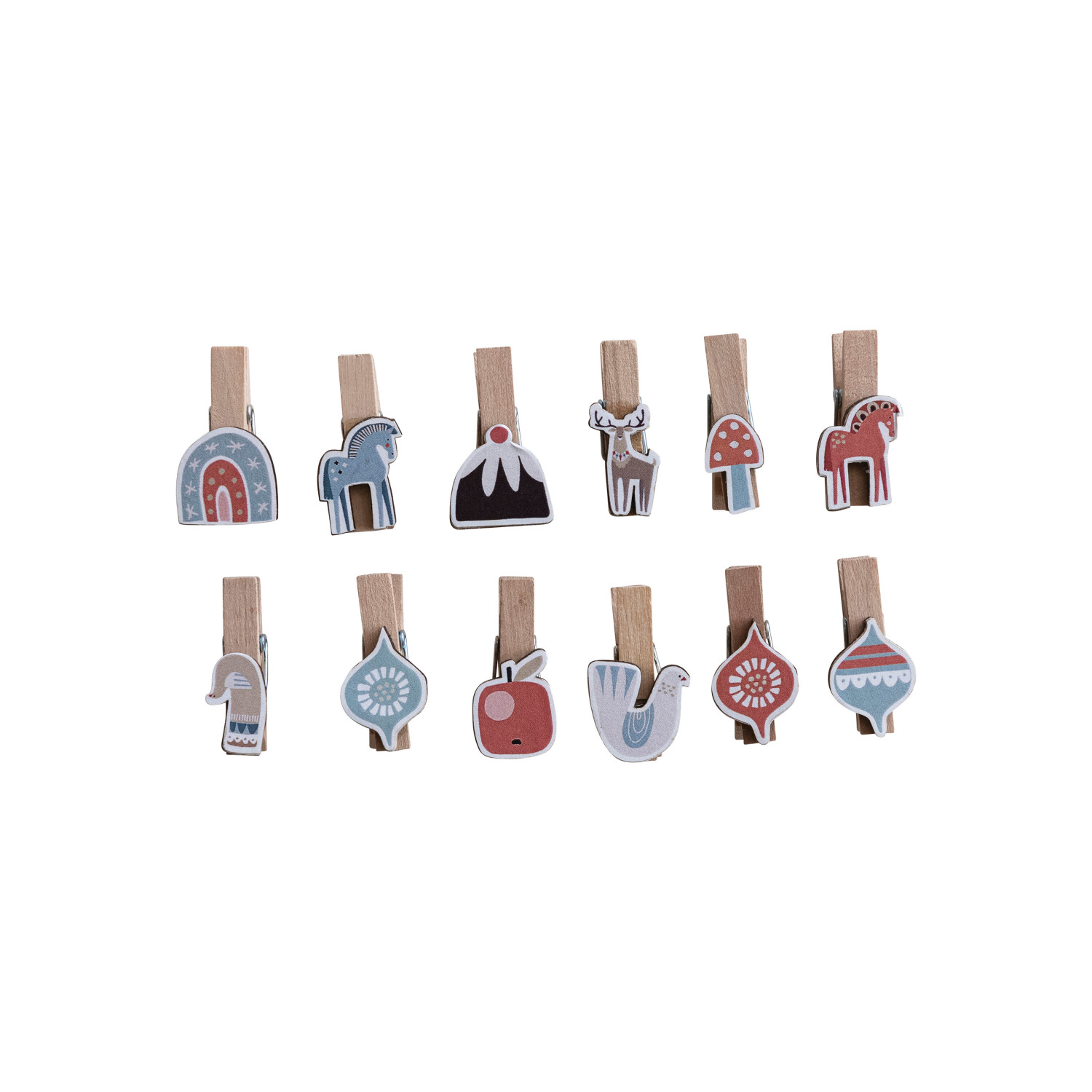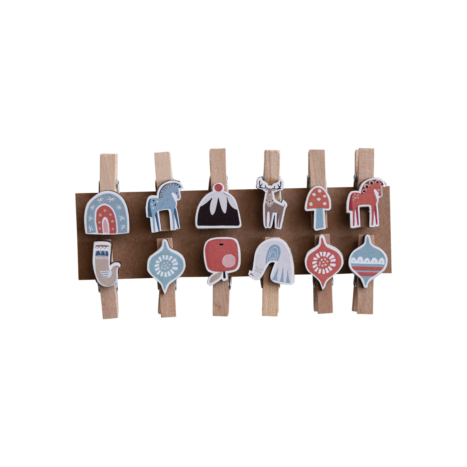 Wood & Printed Paper Holiday Icons w/ Clips, Set of 12