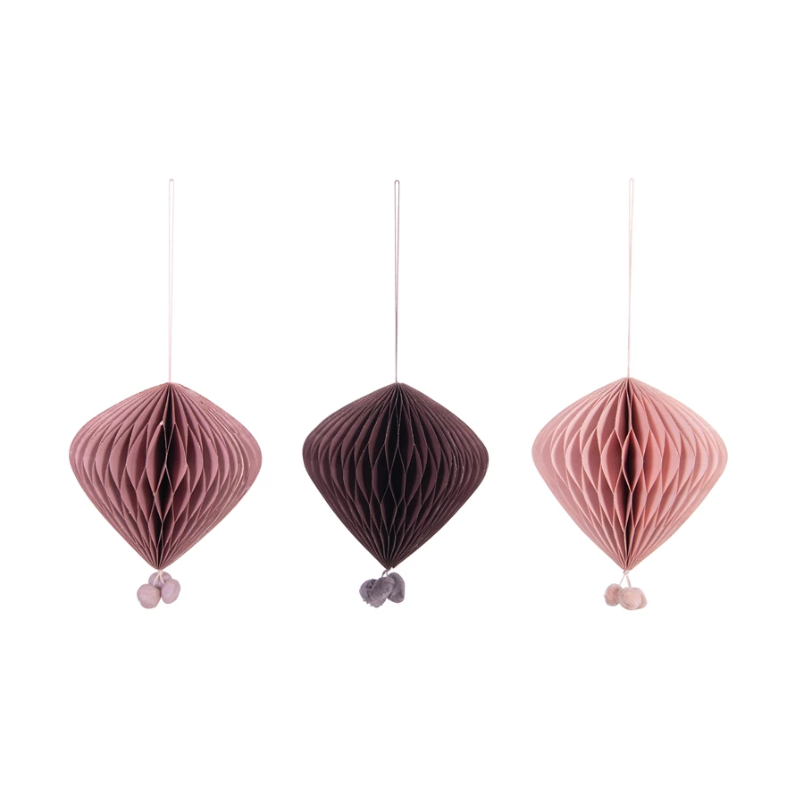 7"H Paper Honeycomb Ornament with Pom Poms, 3 Colors