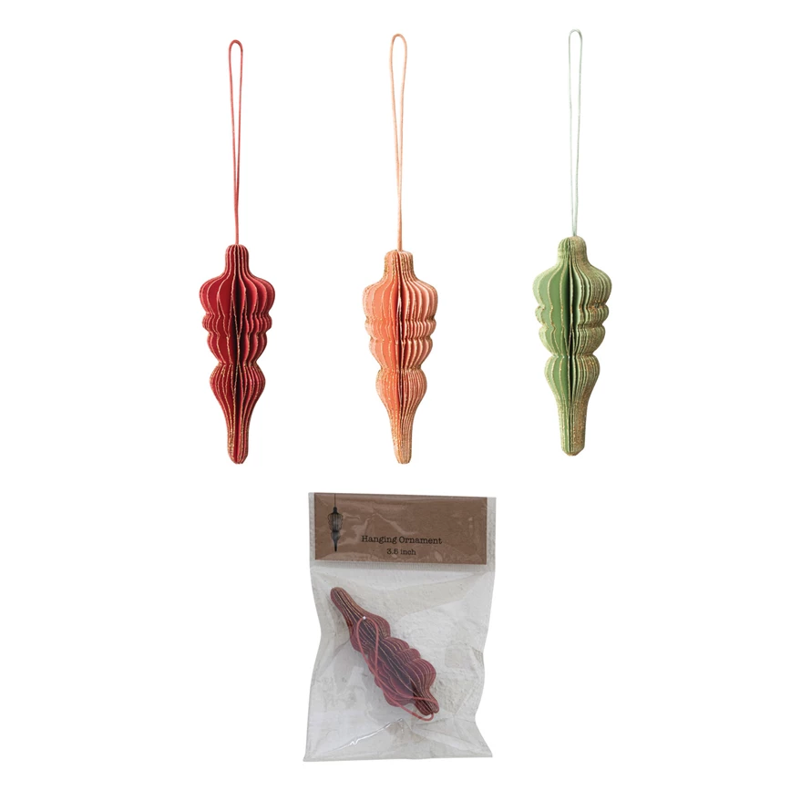 Catalog Name: 3-1/4"H Handmade Recycled Paper Folding Honeycomb Finial Ornament w/ Glitter, 3 Colors