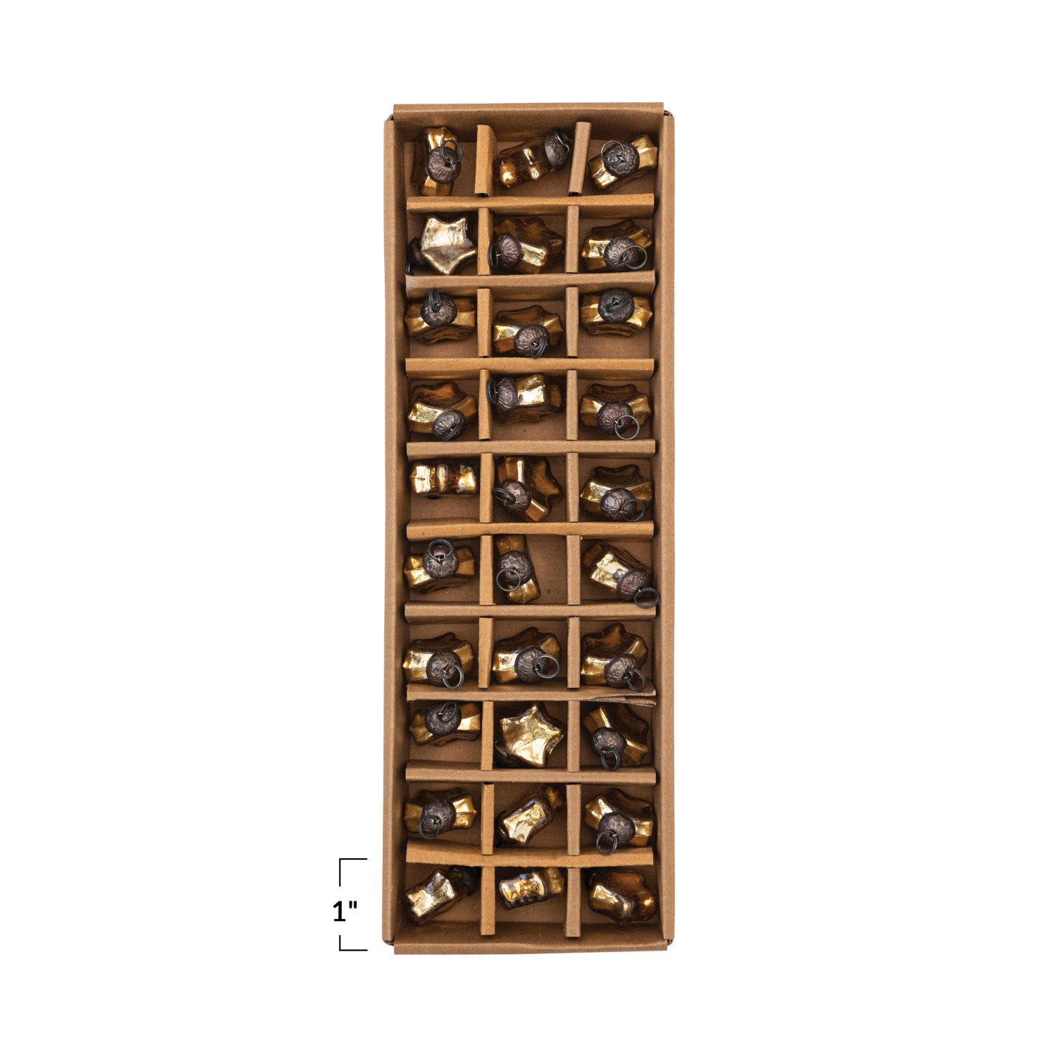 Catalog Name: 1"H Glass Star Shaped Ornaments in Kraft Box, Gold Finish, Set of 30